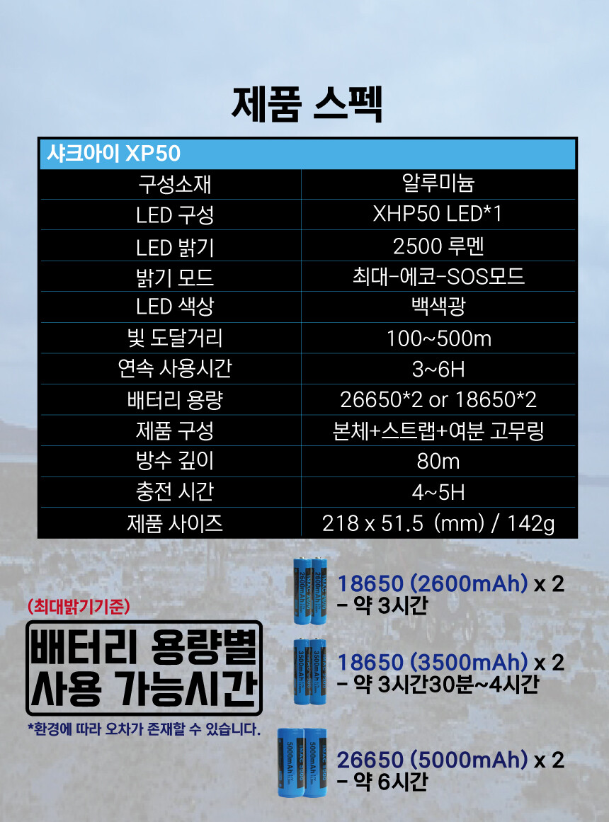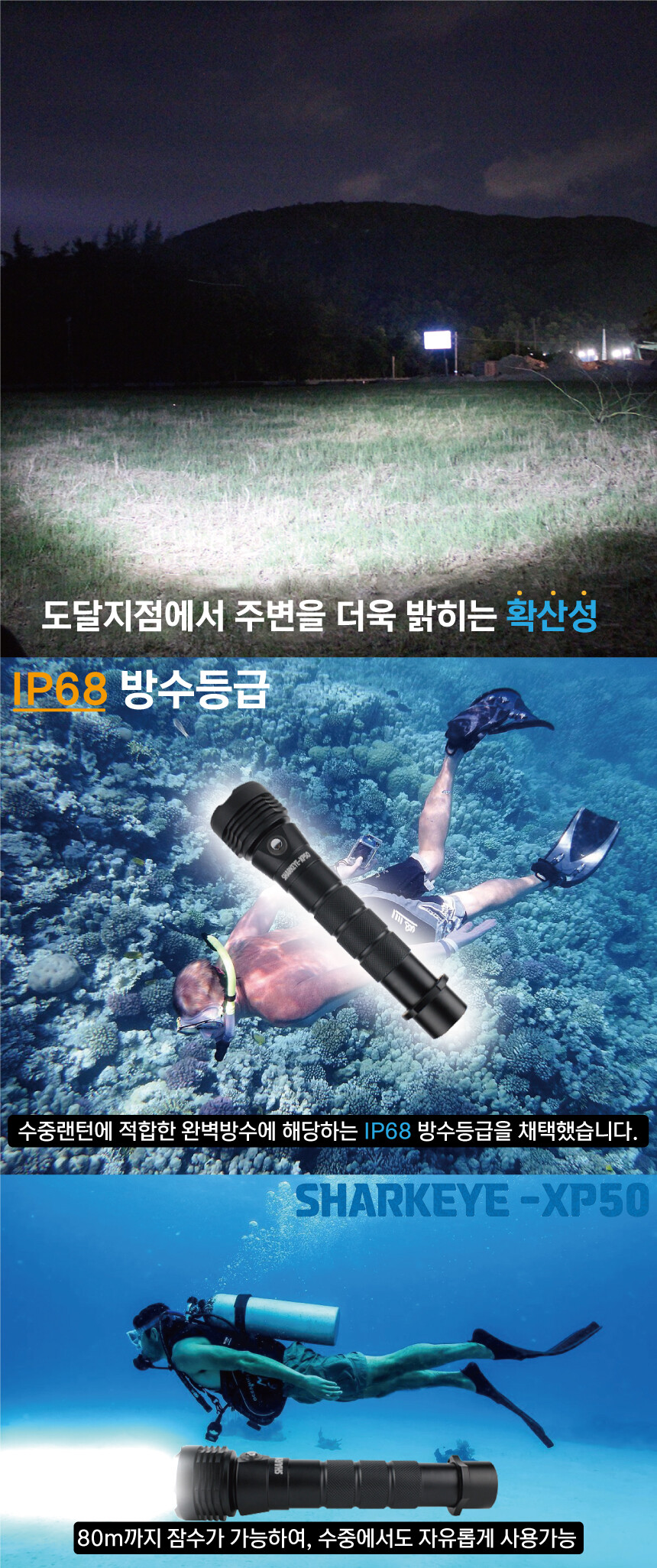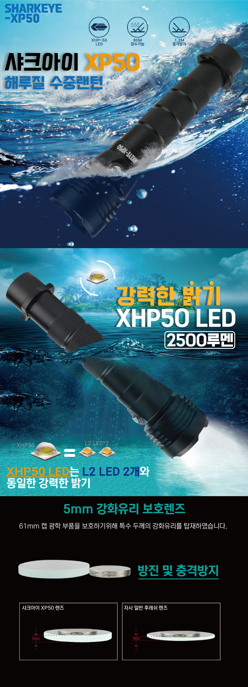 샤크아이 XP50 수중랜턴 2500루멘 해루질 써치라이트 XHP50