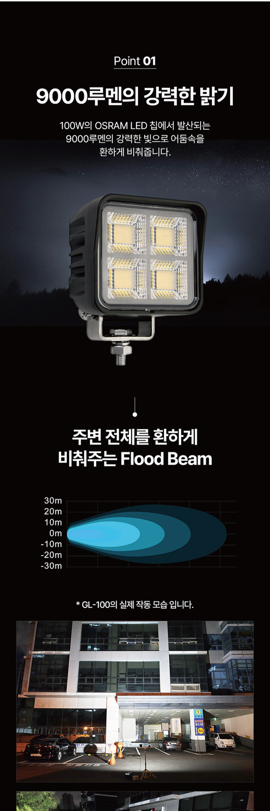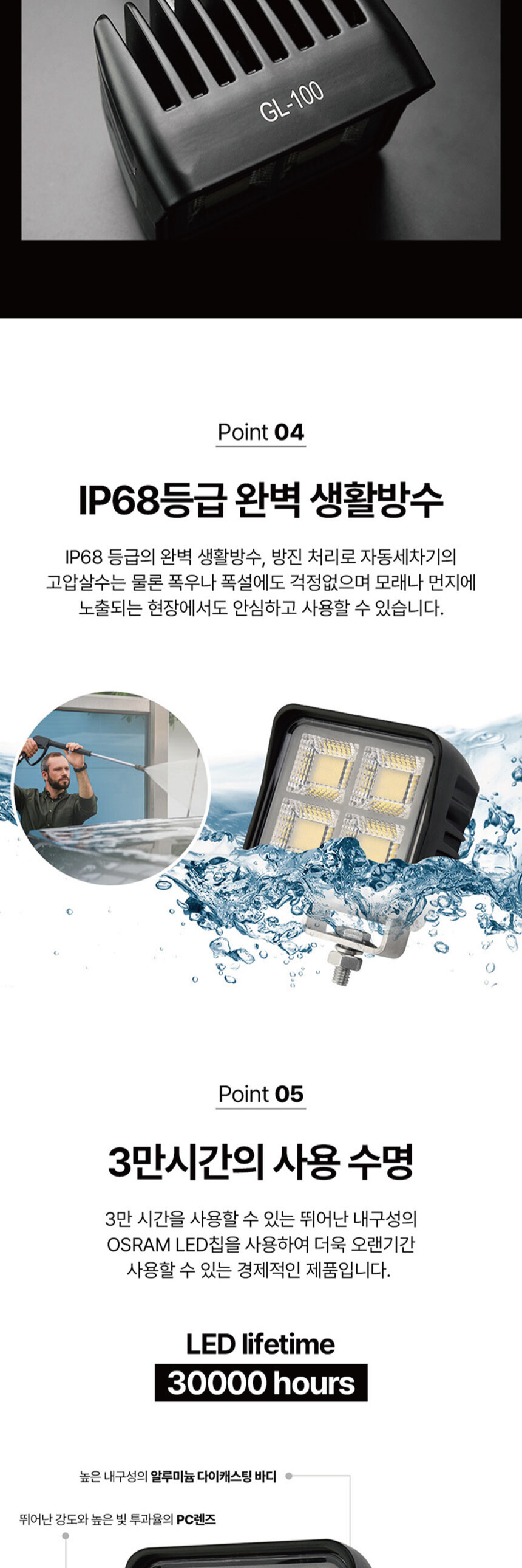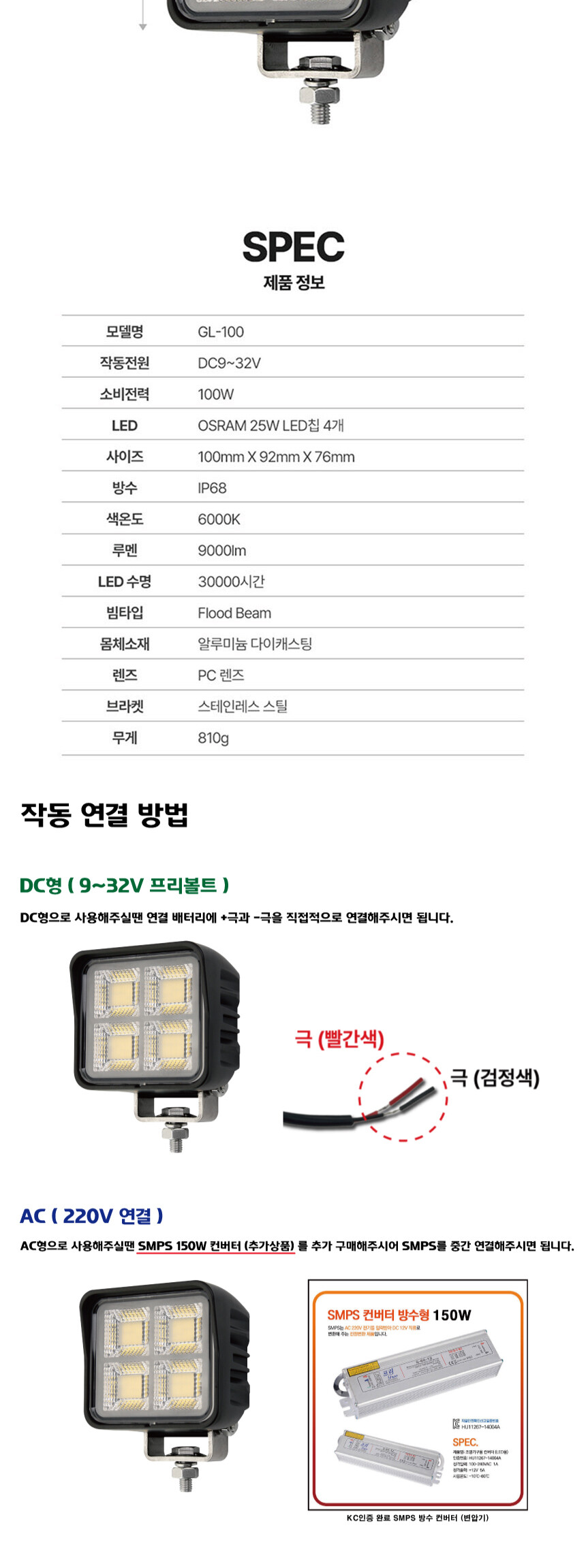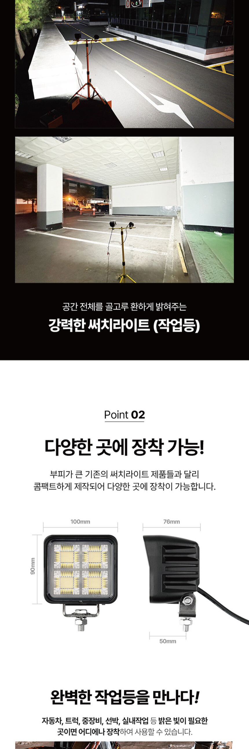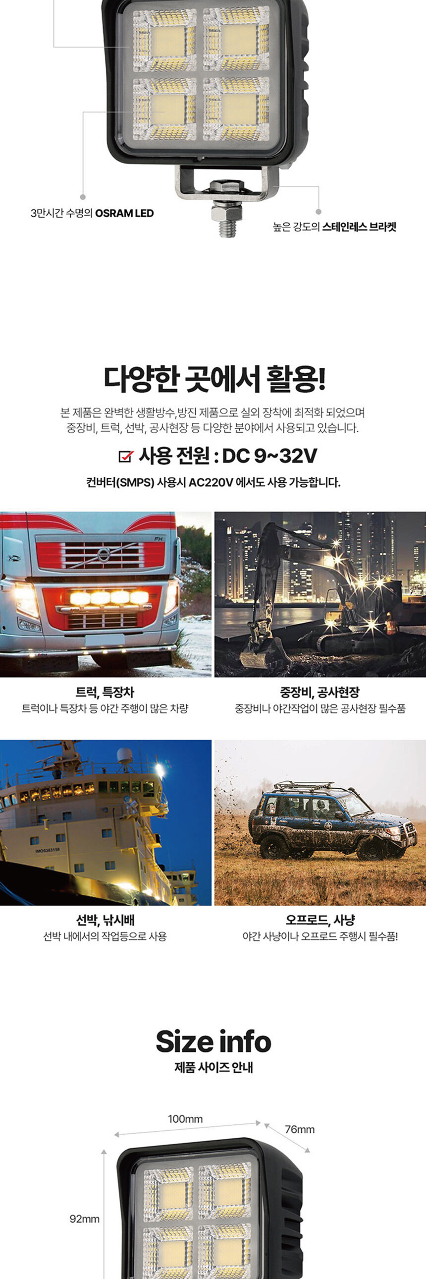 100W LED 써치라이트 DC 12V 24V 차량용 차량 트렉터 지게차 화물차 라이트 선박 작업등