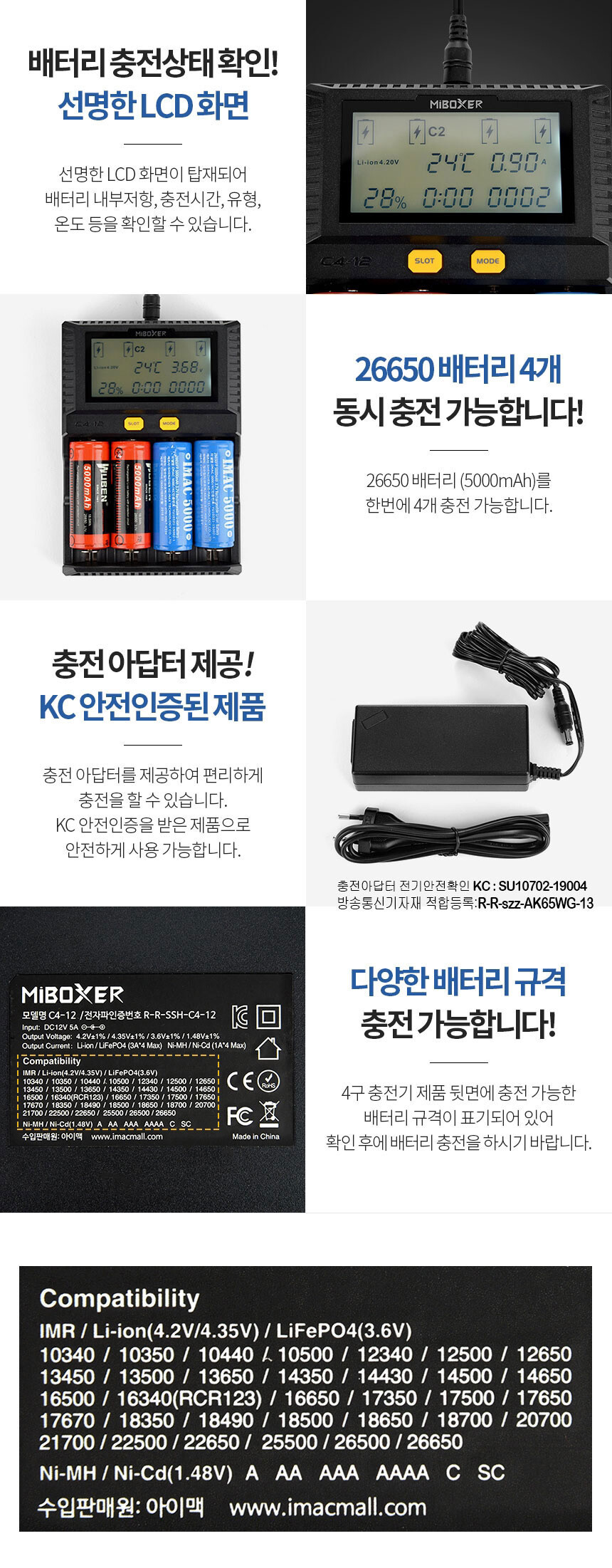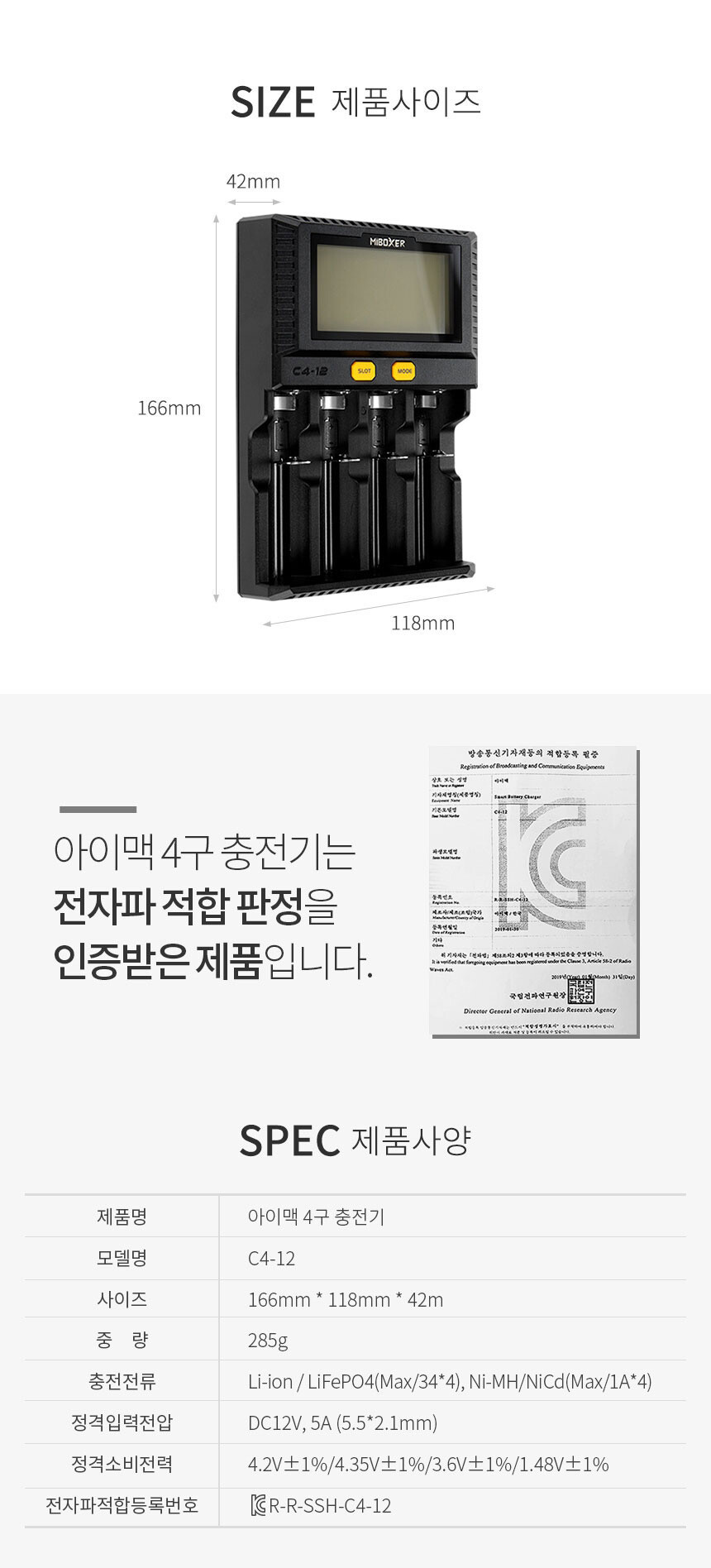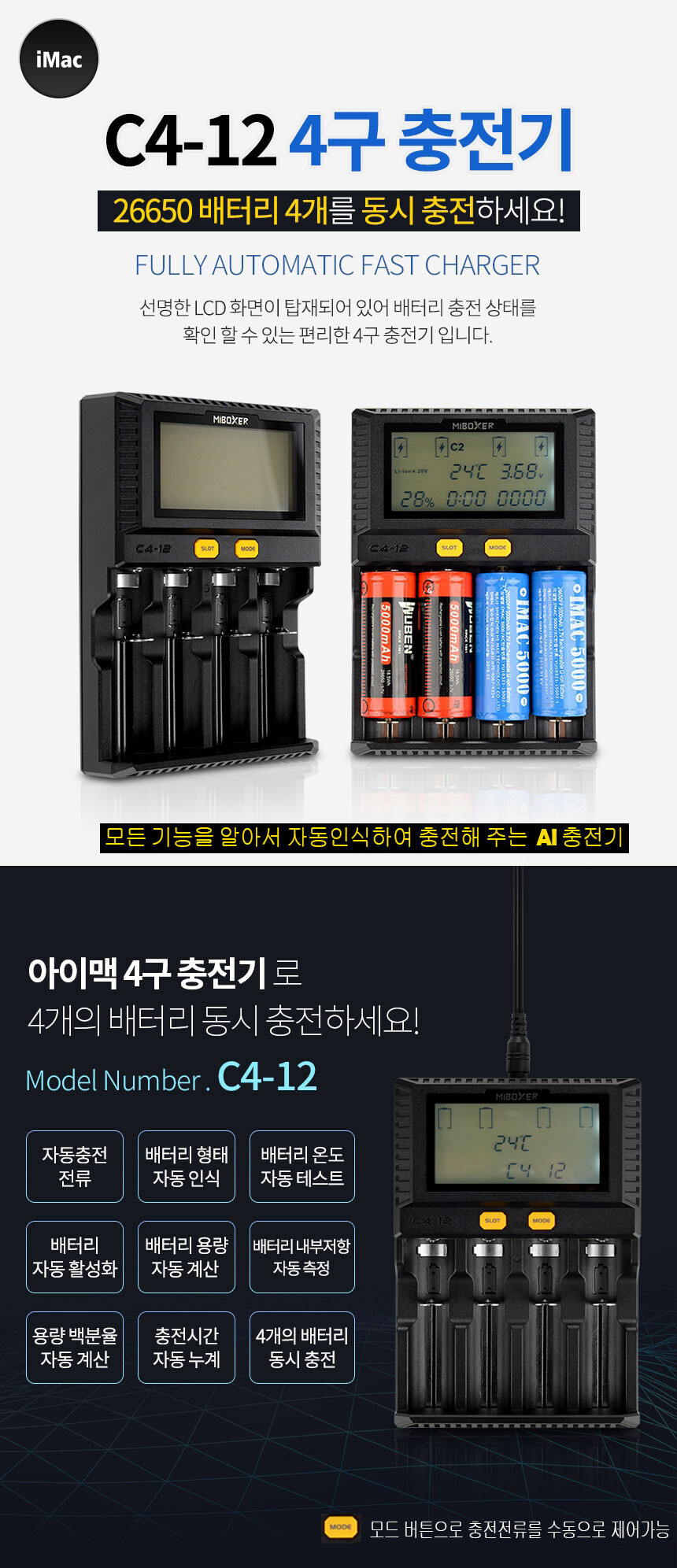 C4-12 4구 고속 충전기 리튬이온배터리 건전지 18650 26650