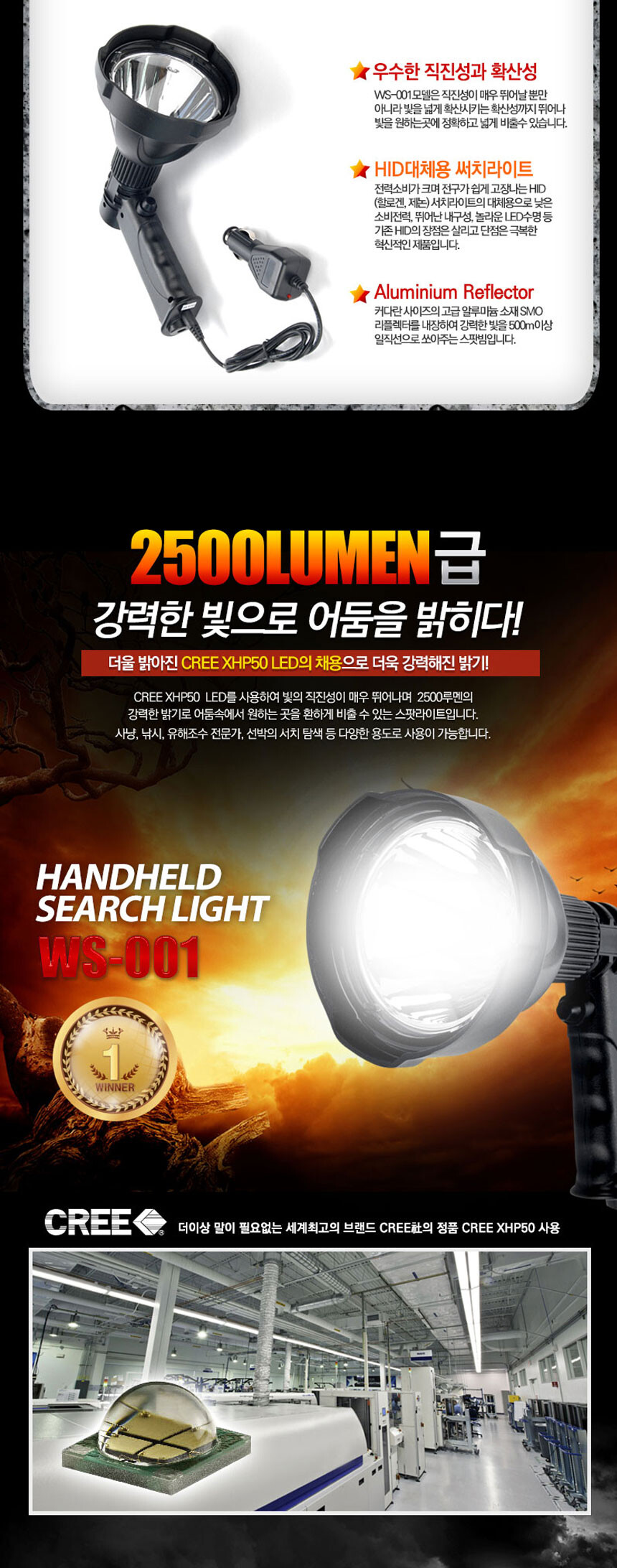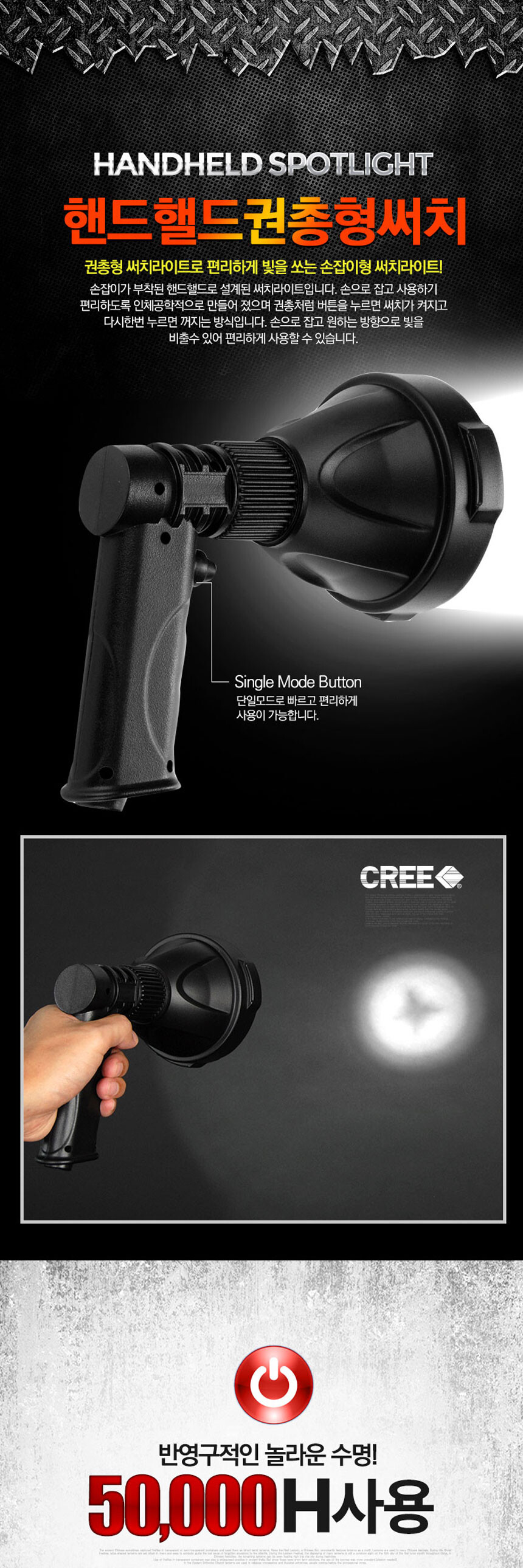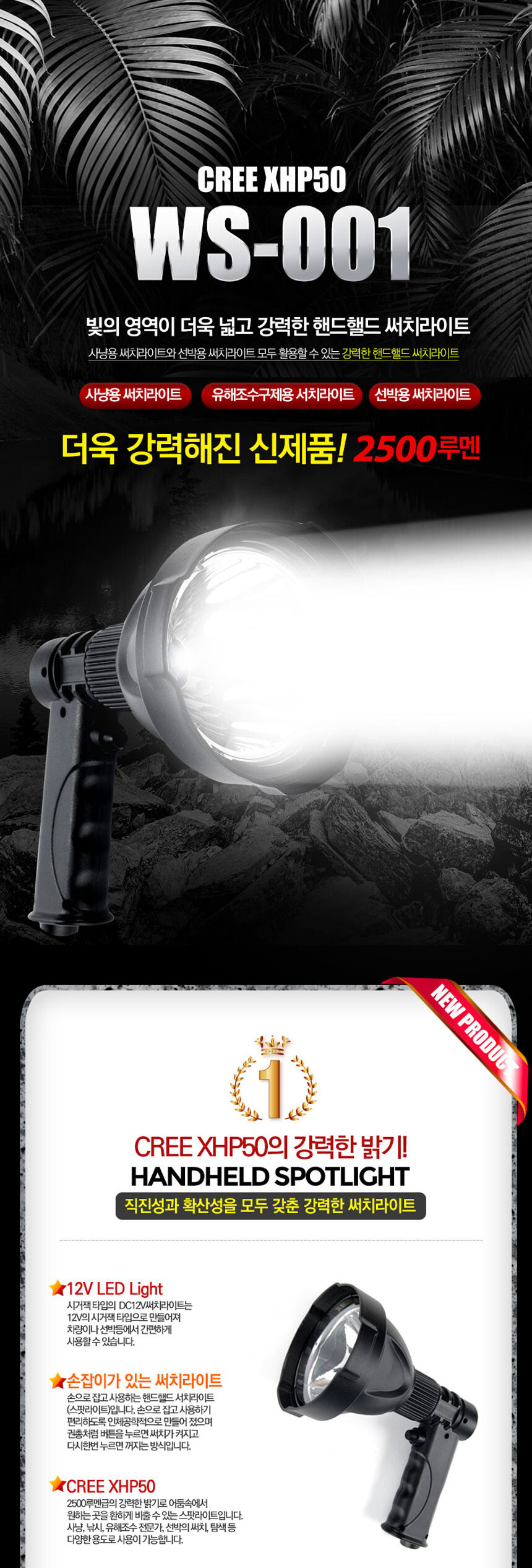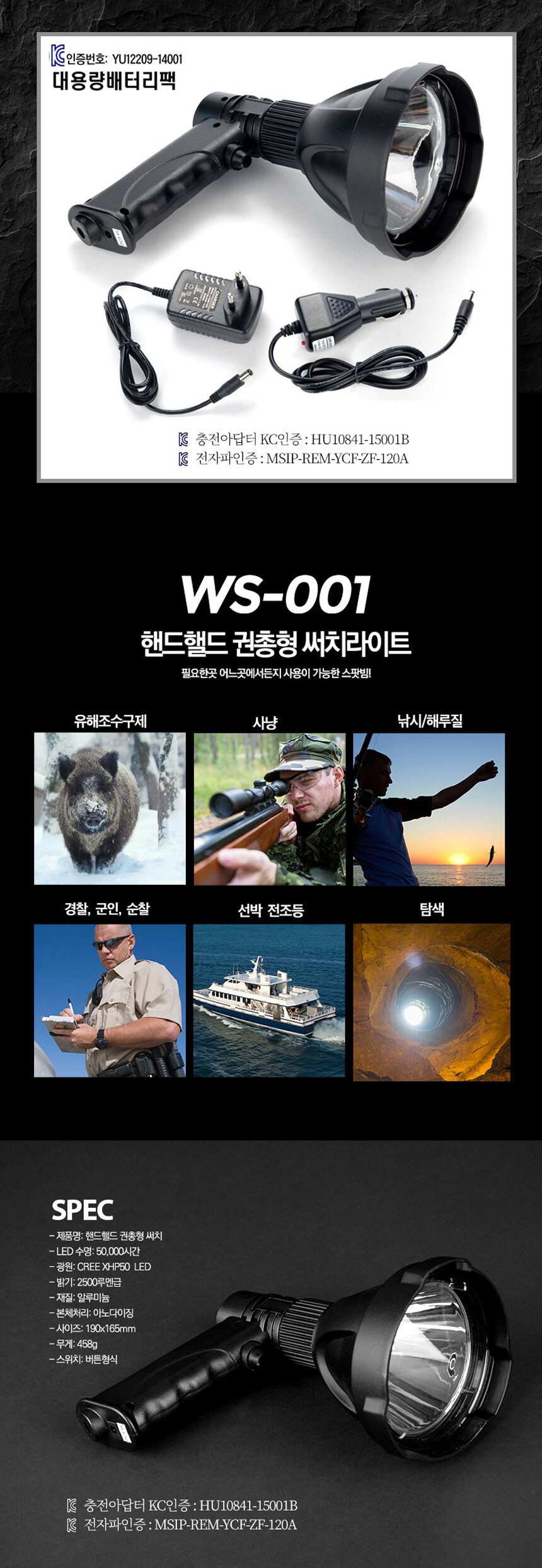 WS001 휴대용 써치라이트 2500루멘 충전식 XHP50 권총형 사냥 유해조수구제