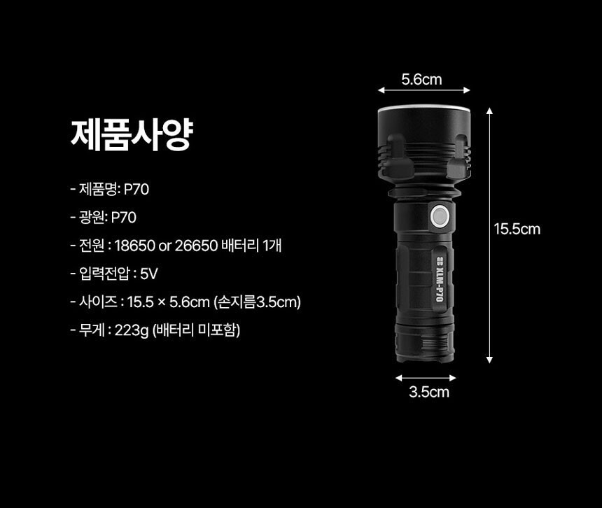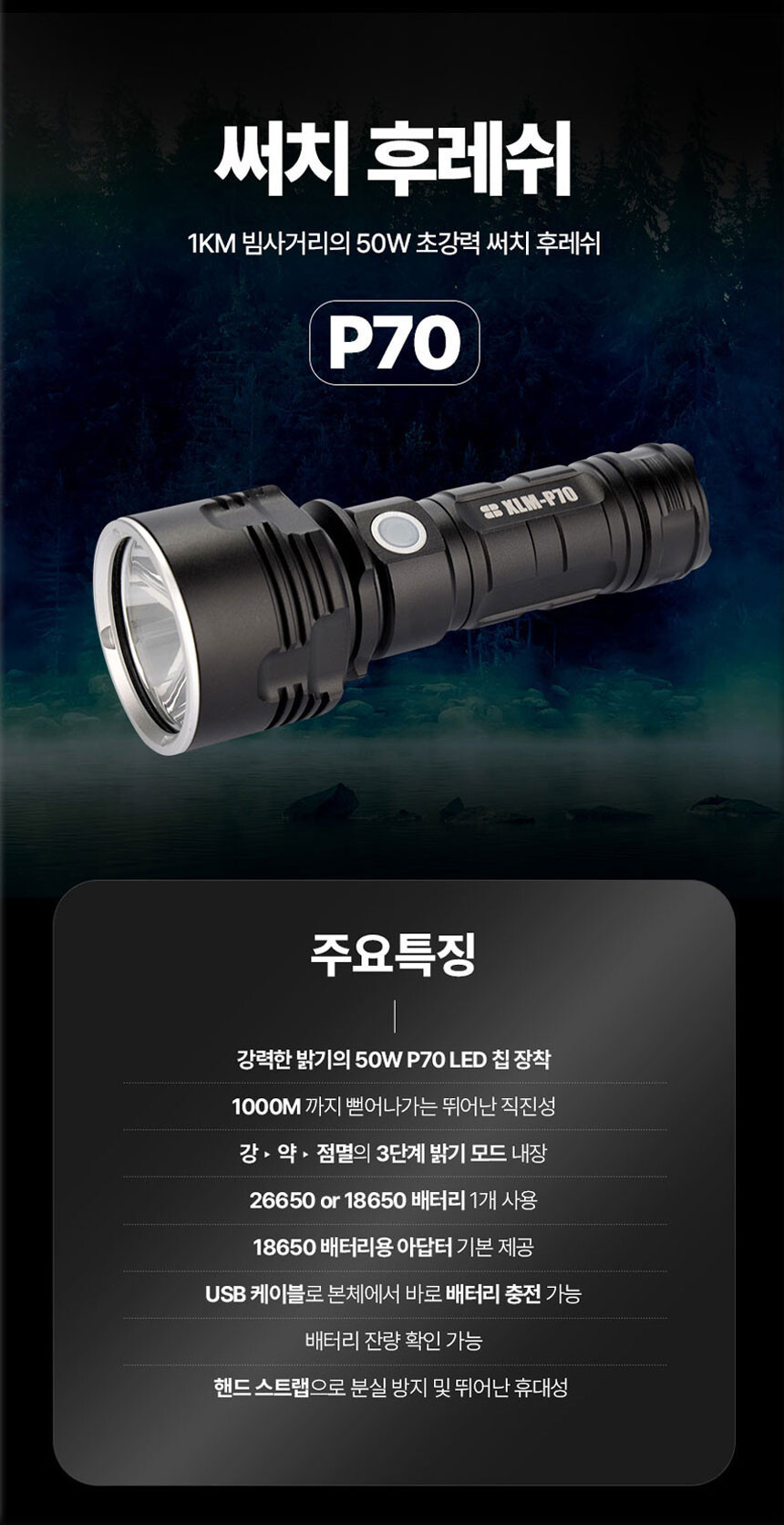 P70 소형 LED 후레쉬 휴대용 XHP70 충전식 고휘도 랜턴 탐조등