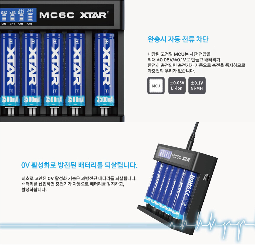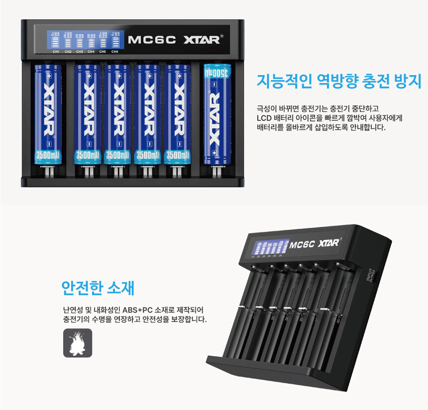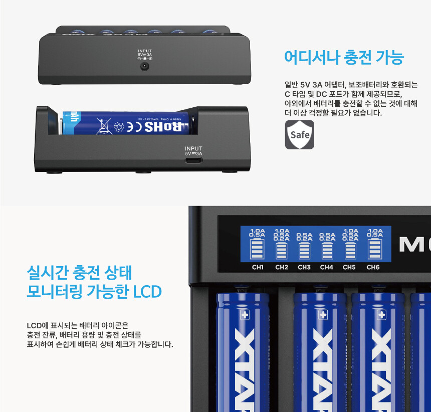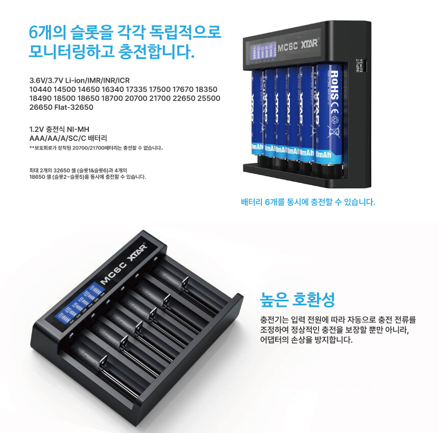 6구 리튬이온 배터리 고속 충전기 18650 26650 충전 건전지 밧데리