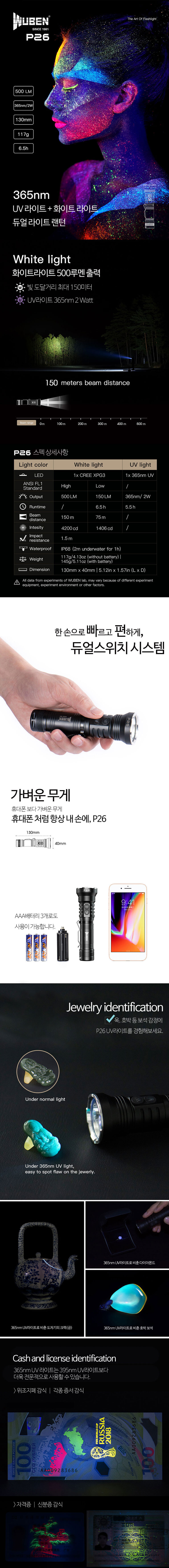WUBEN 우벤 P26 UV 라이트 500루멘 자외선 레진 현장검수 젤네일
