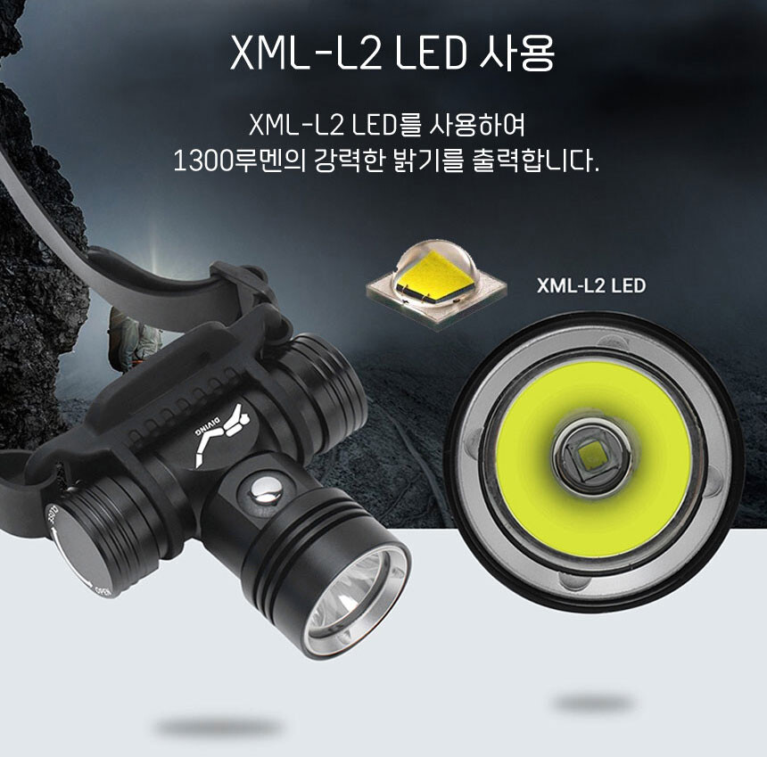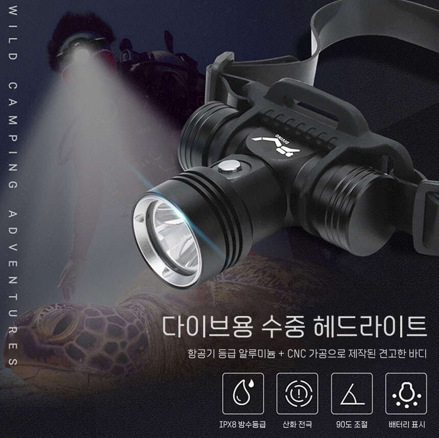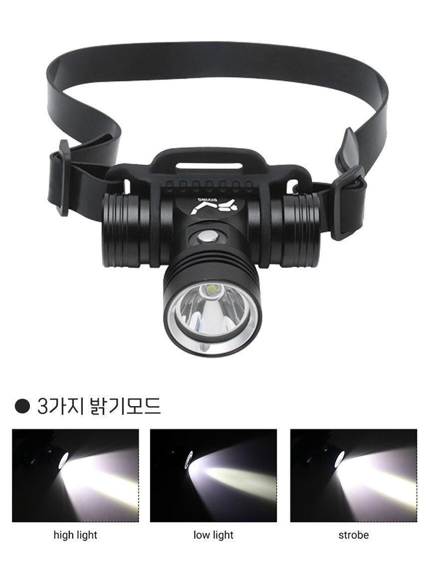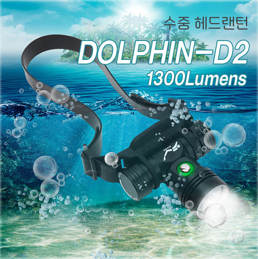돌핀 D2 수중 헤드랜턴 1300루멘 해루질 다이버 CREE