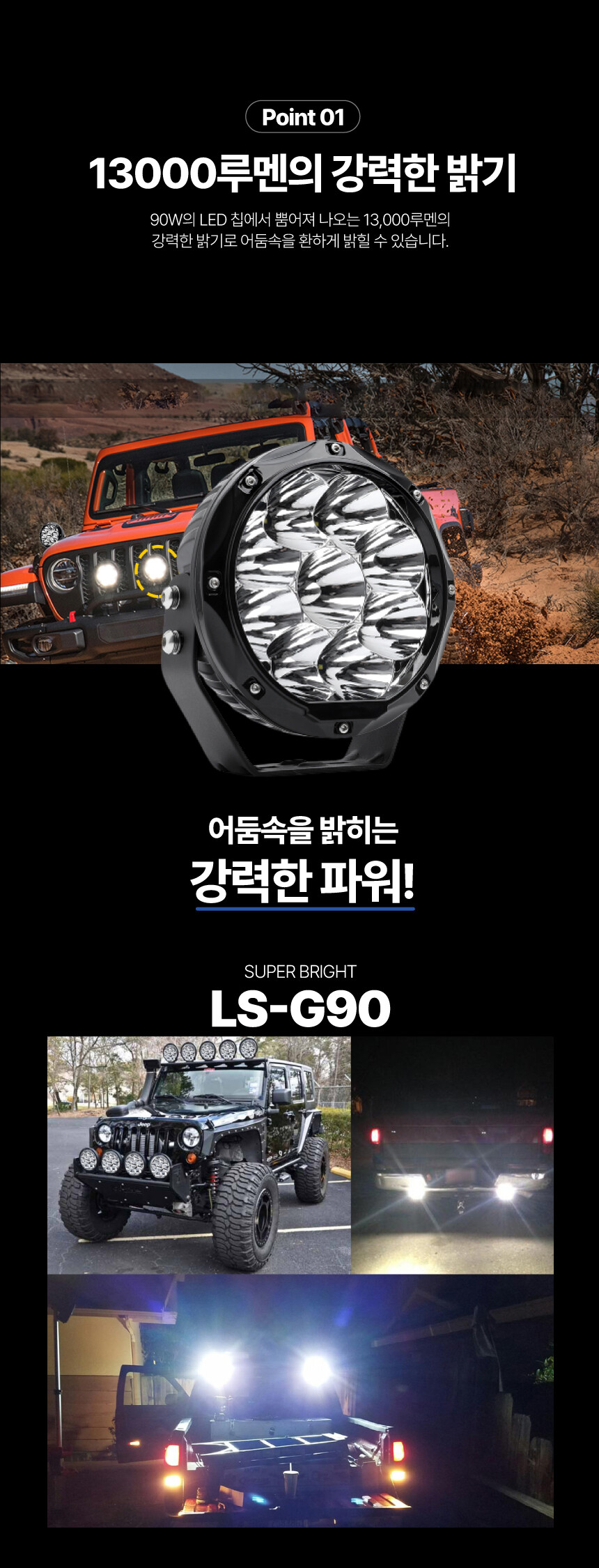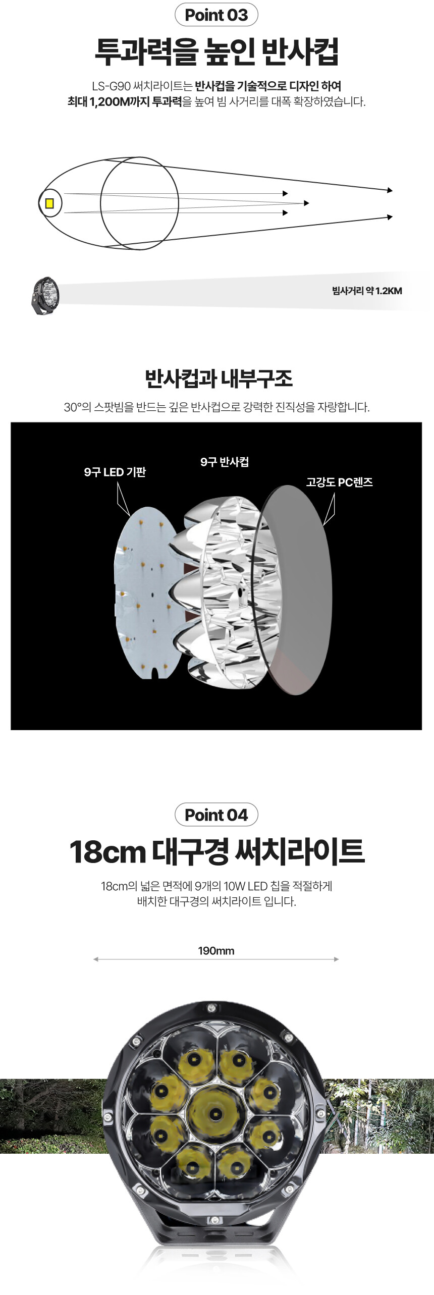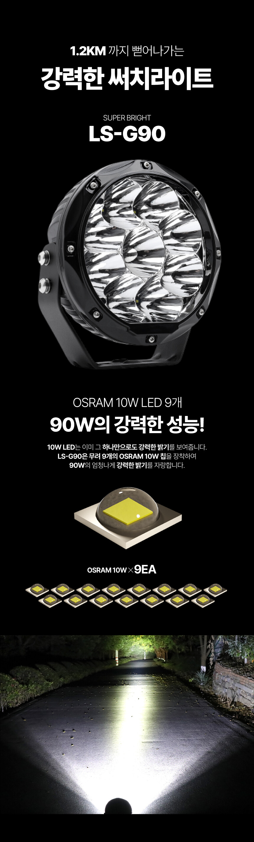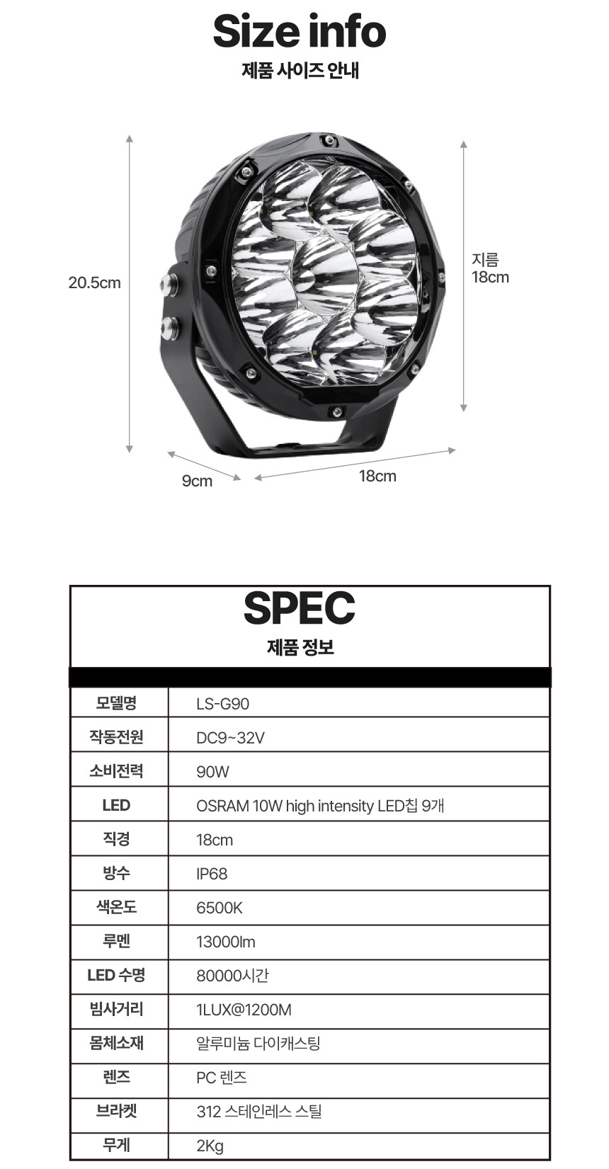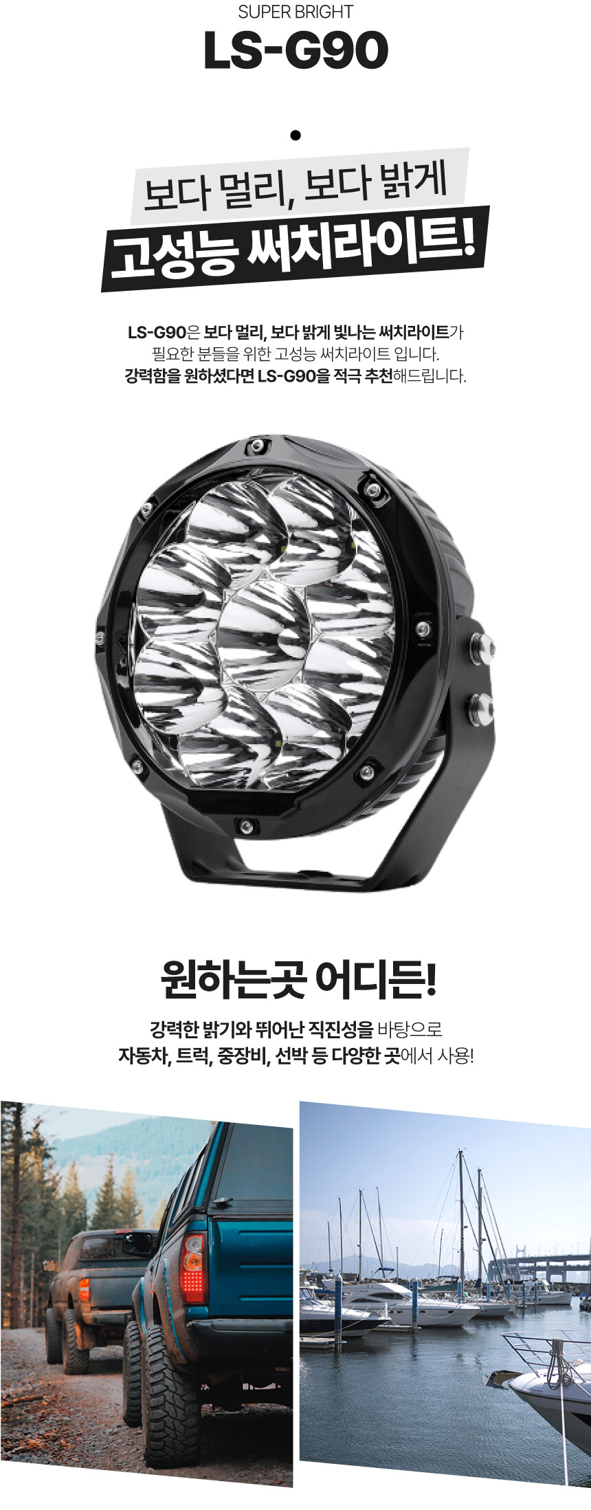 LS-G90 LED 써치라이트 90W 13000루멘 선박 차량 보트 DC 12V 24V