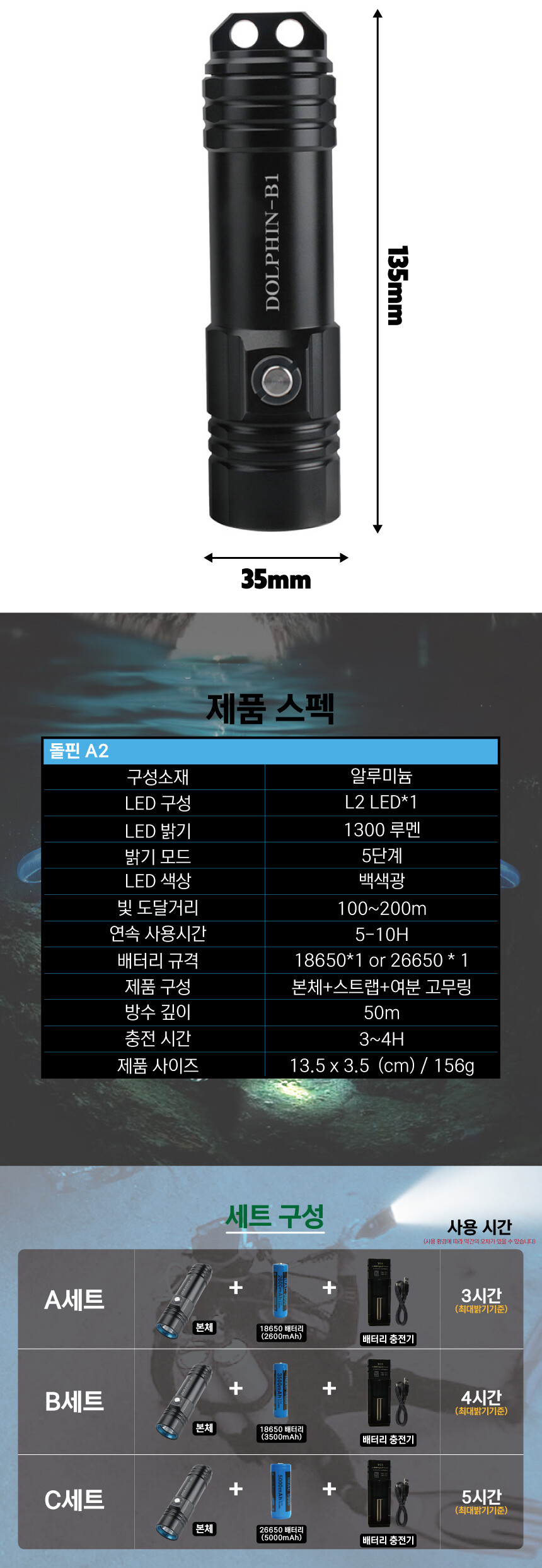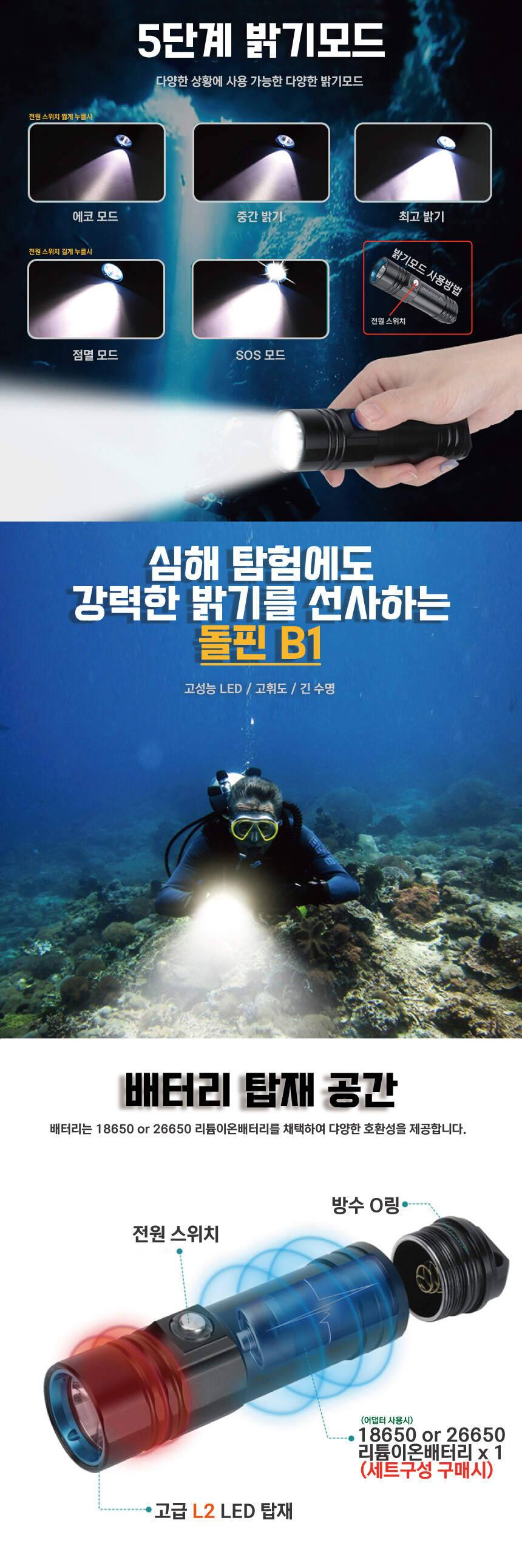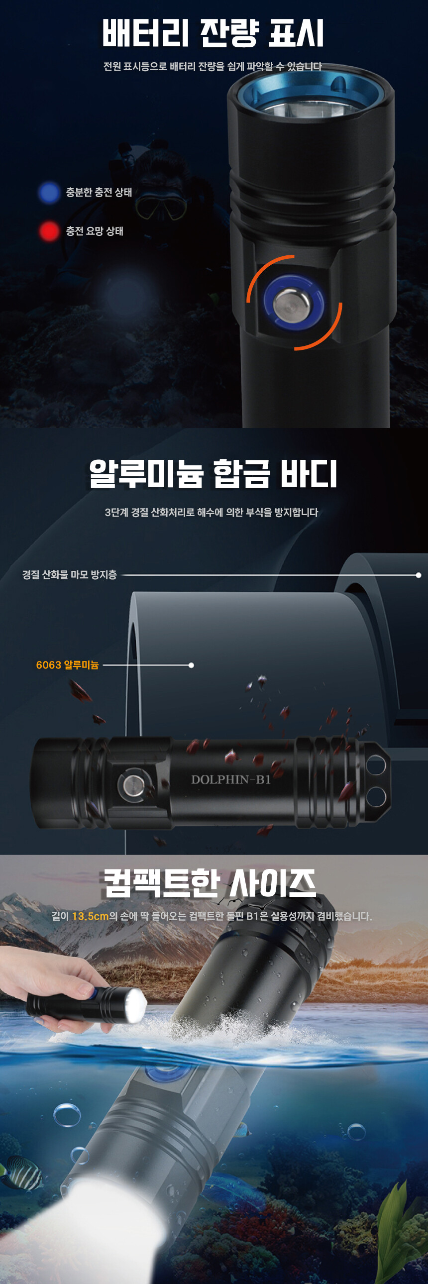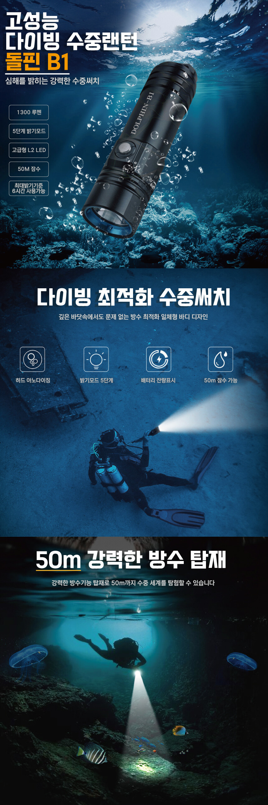 돌핀 B1 수중 랜턴 1300루멘 해루질 써치