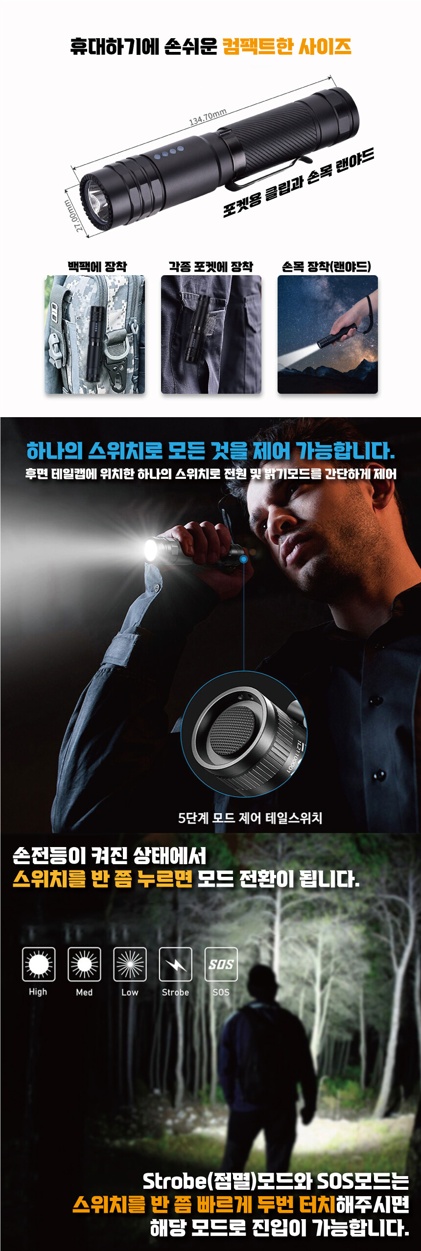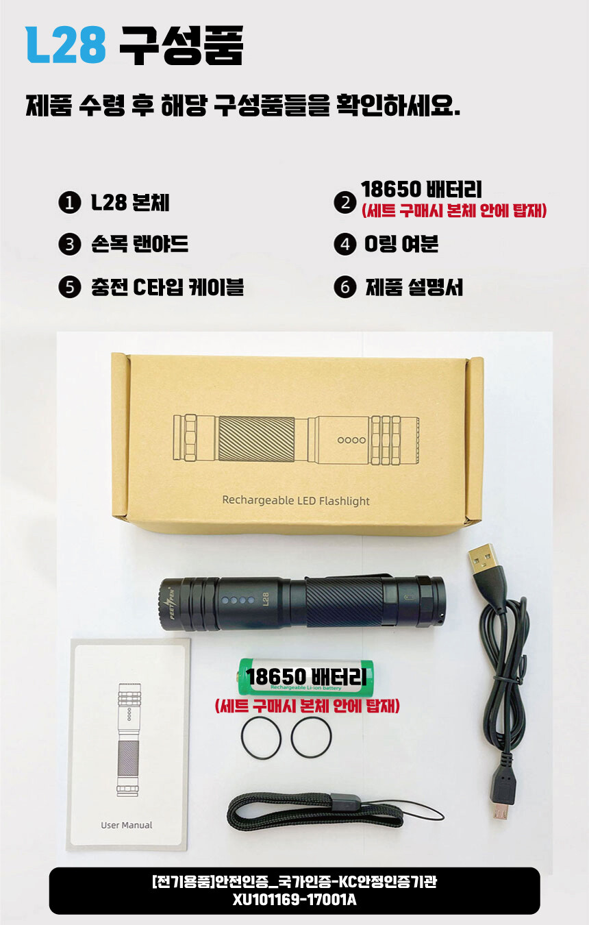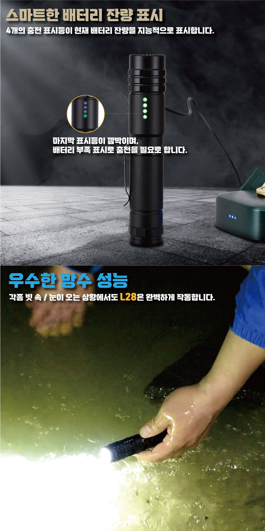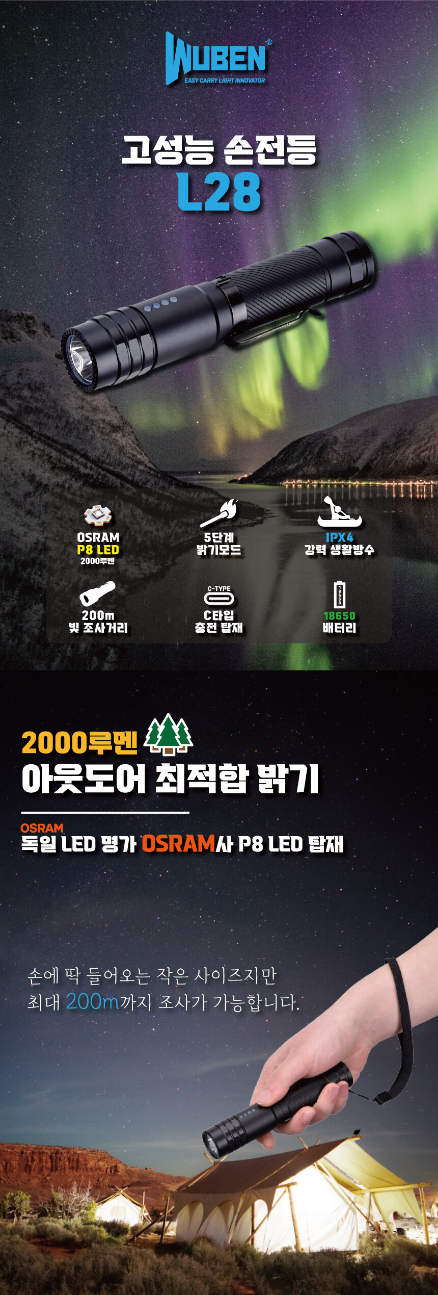 우벤 L28 LED 손전등 충전식 휴대용 캠핑 순찰 랜턴 후레쉬