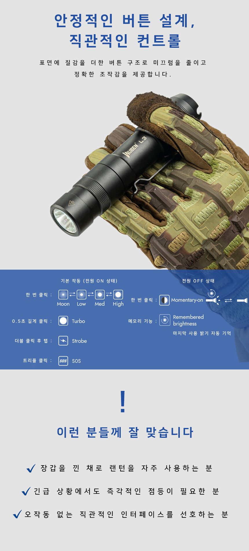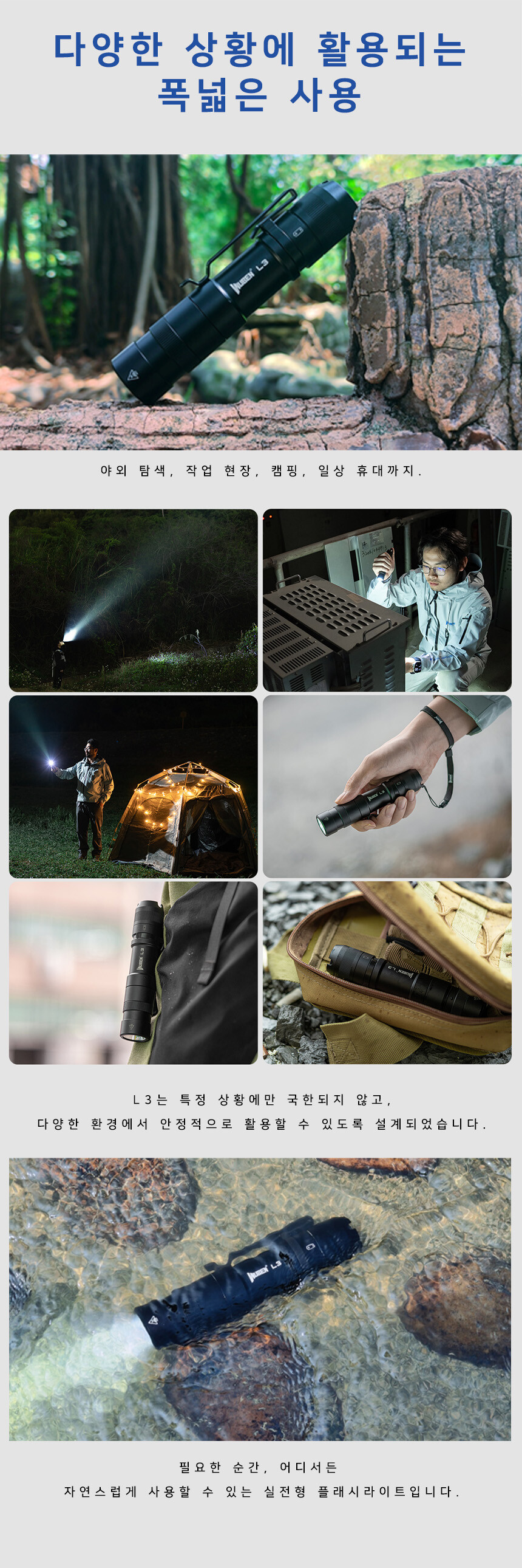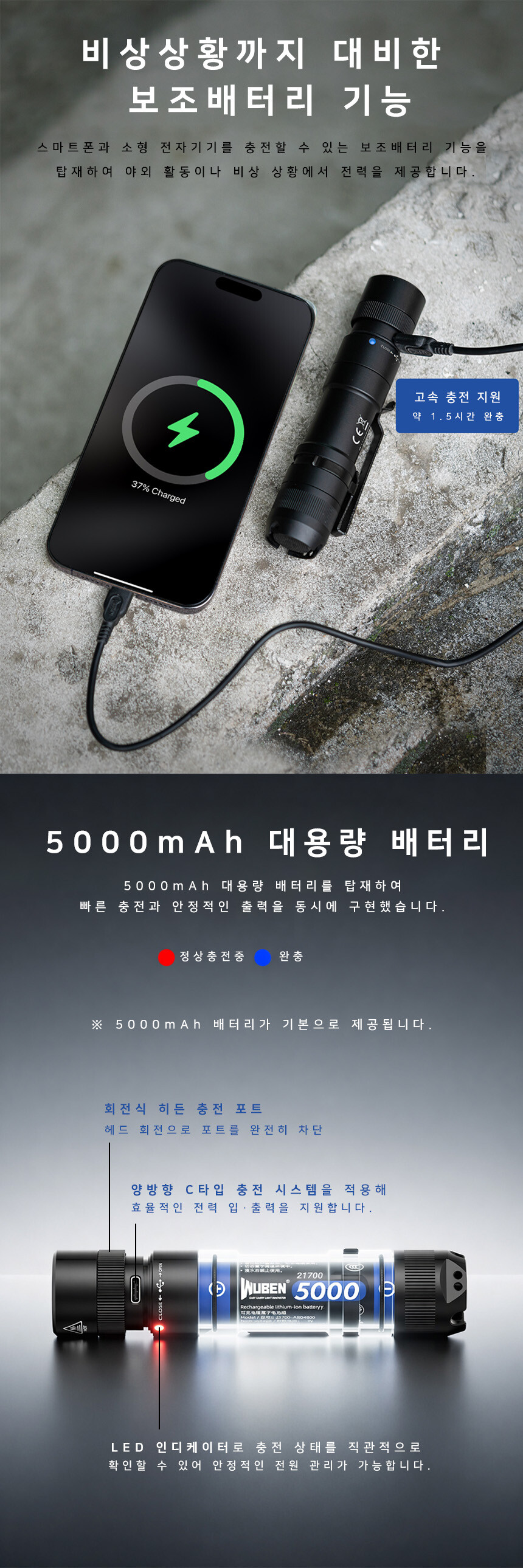 우벤 L3 LED 후레쉬 순찰 캠핑 등산 소형 C타입 충전식 라이트 랜턴