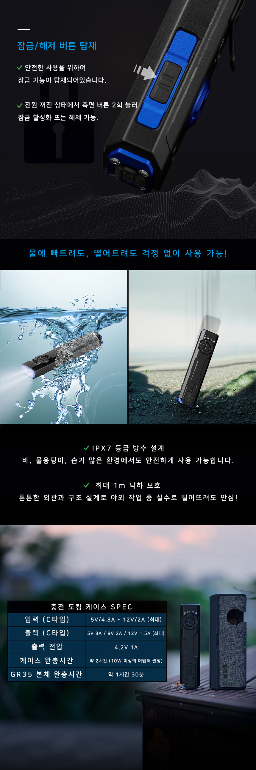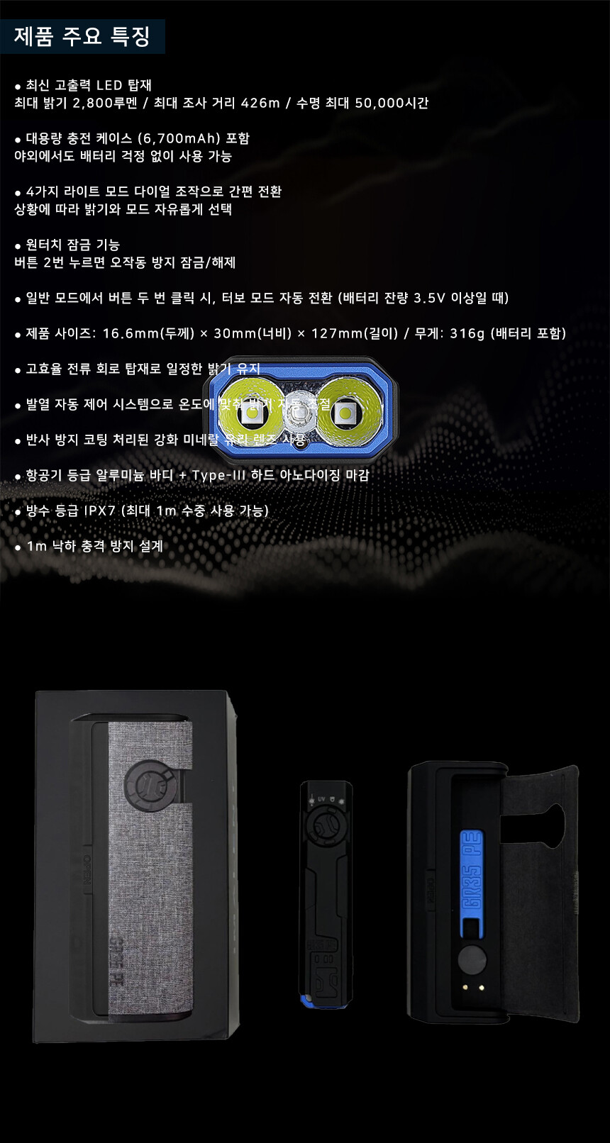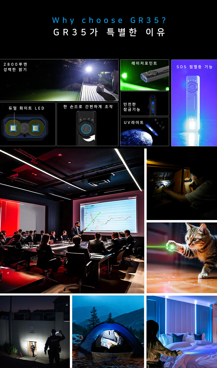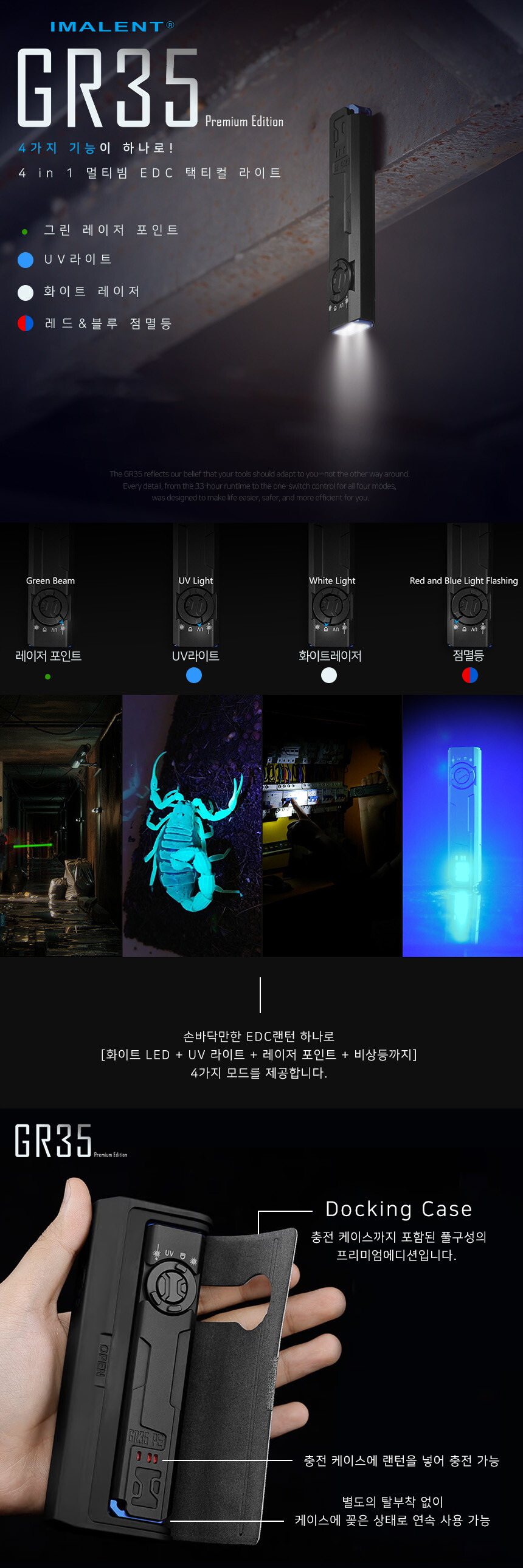 이몰렌트 GR35 LED 랜턴 다기능 UV 전술 텍티컬 군용 캠핑 라이트 손전등 후레쉬