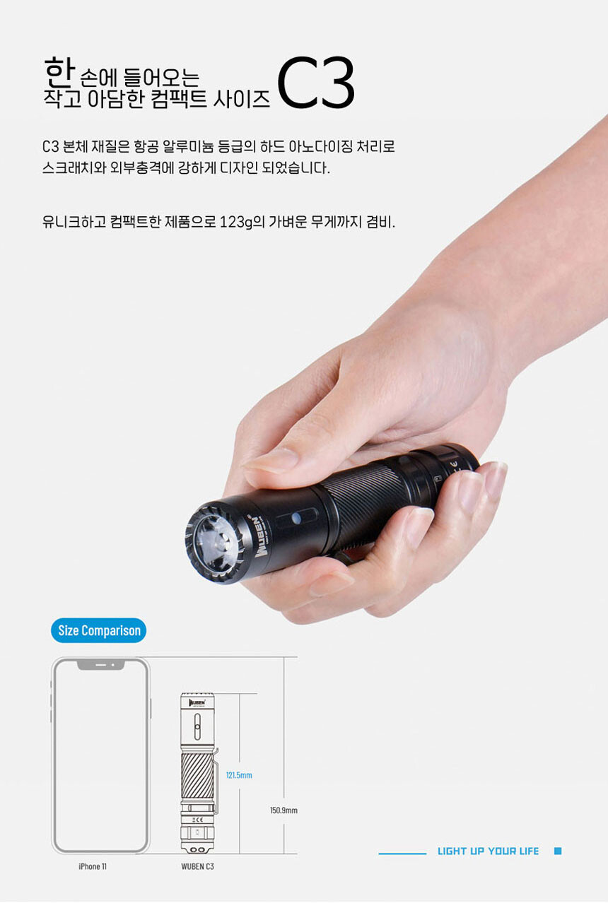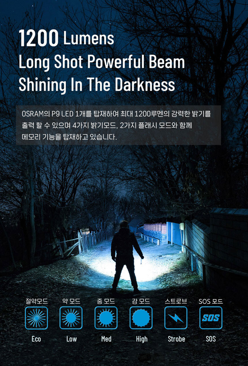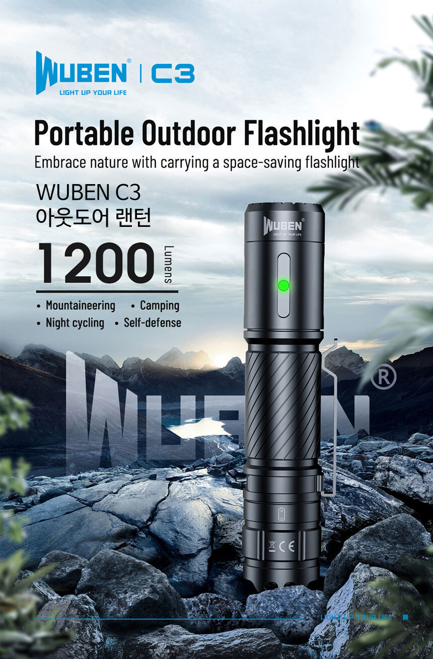 우벤 WUBEN C3 LED 손전등 1200루멘 후라시 등산 낚시 캠핑