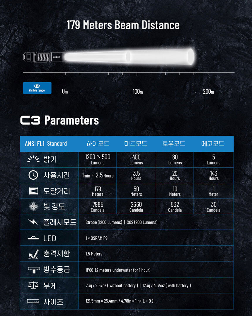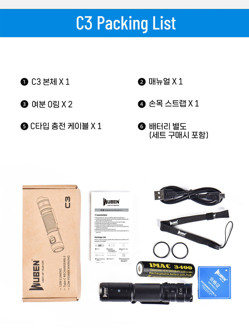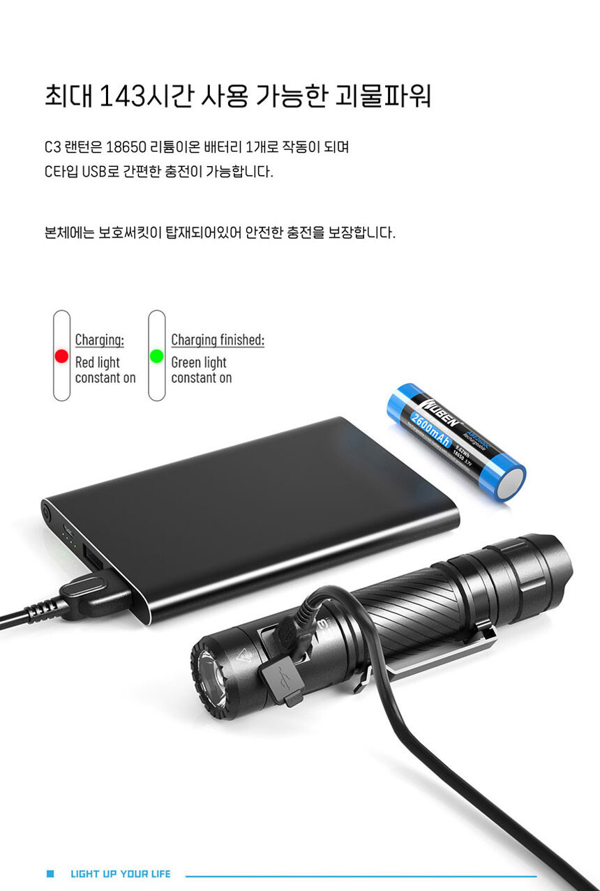우벤 WUBEN C3 LED 손전등 1200루멘 후라시 등산 낚시 캠핑
