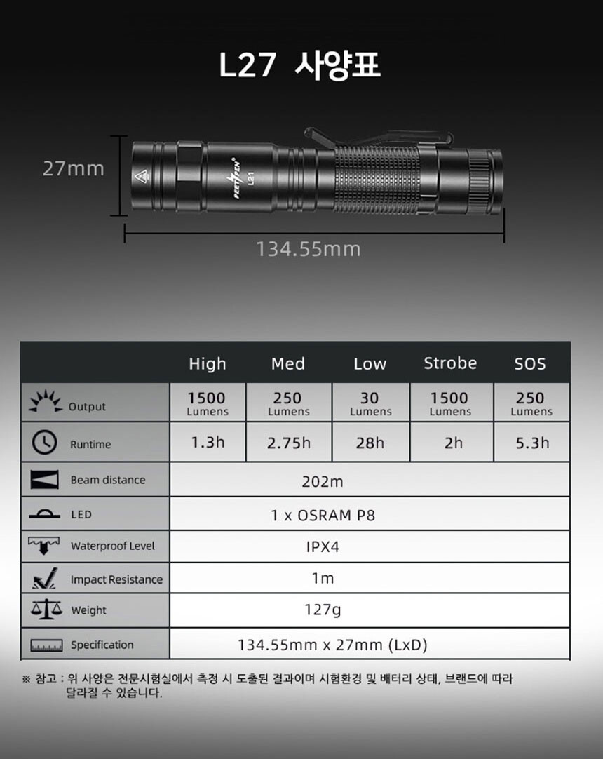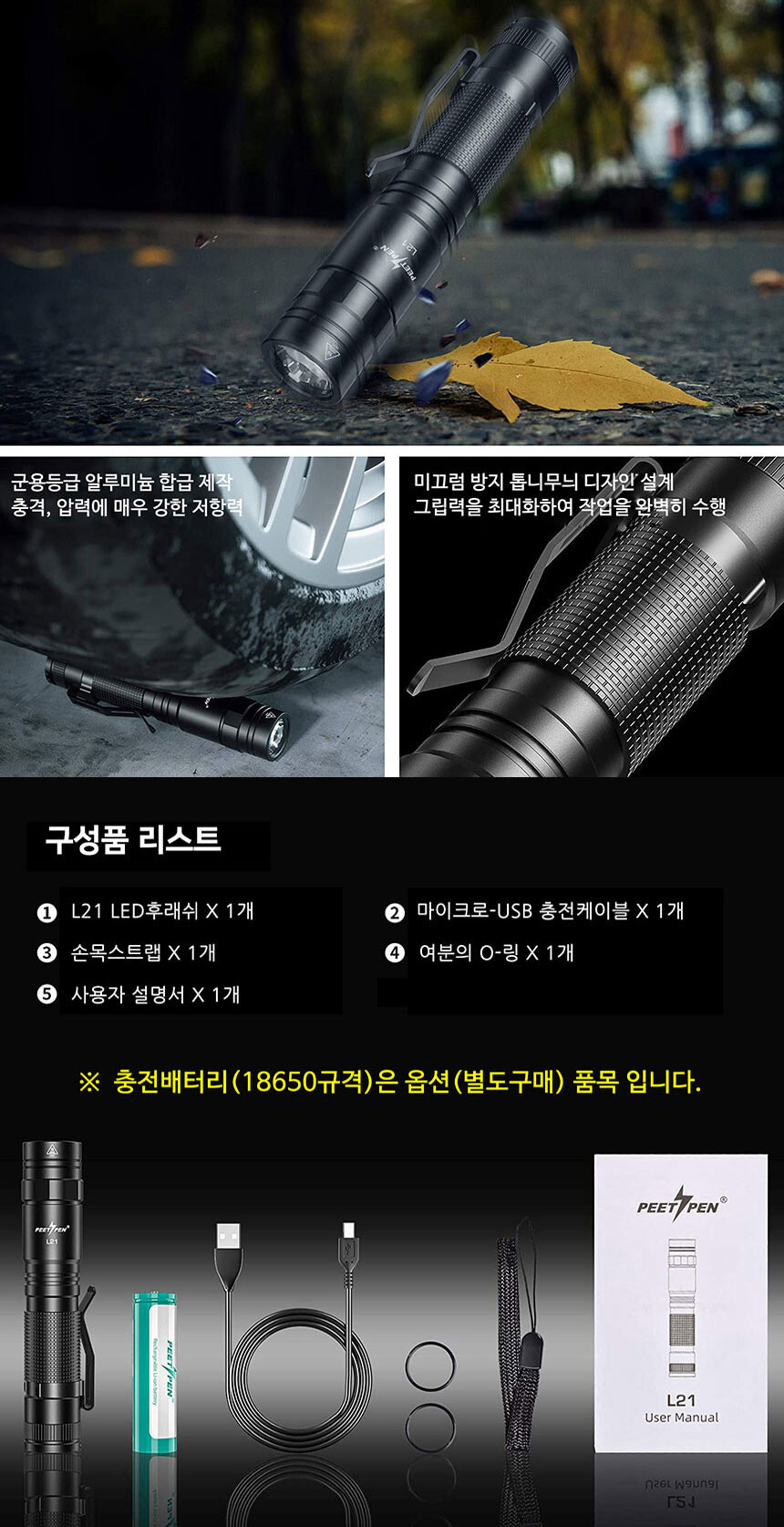 L21 LED 소형 후레쉬 1500루멘 경찰 군인 전술 검사