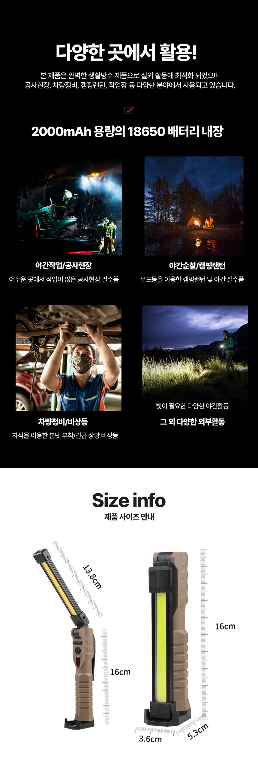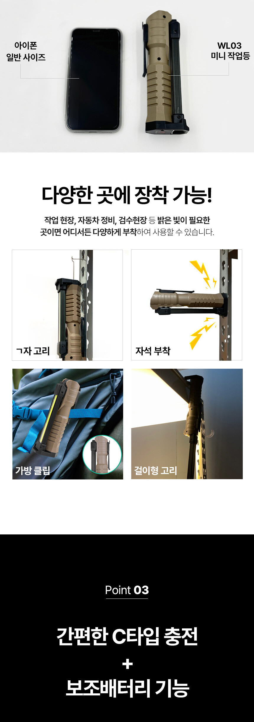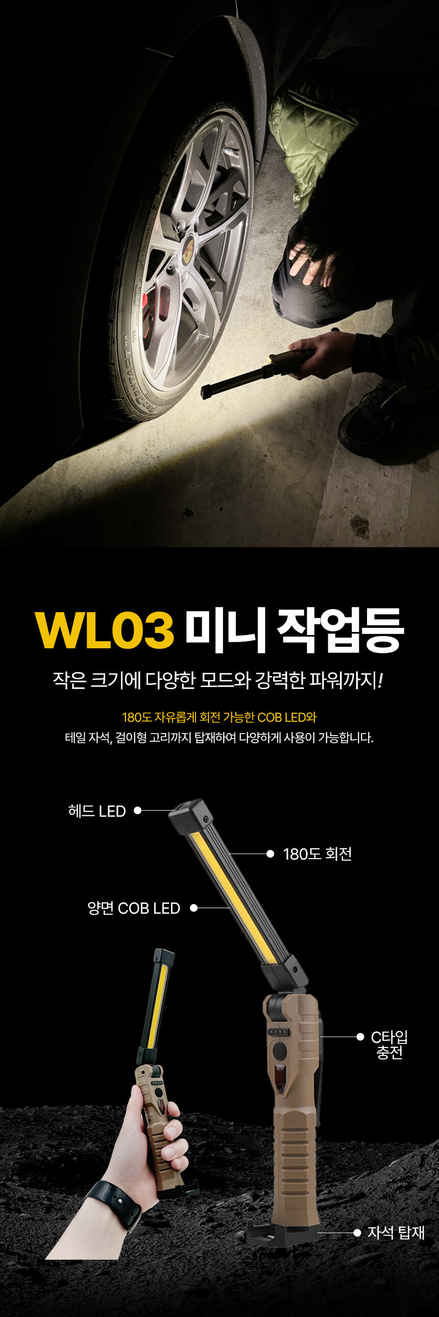 WL-03 LED 작업등 접이식 충전식 자석 C타입 작업 차량 정비등 다용도 랜턴