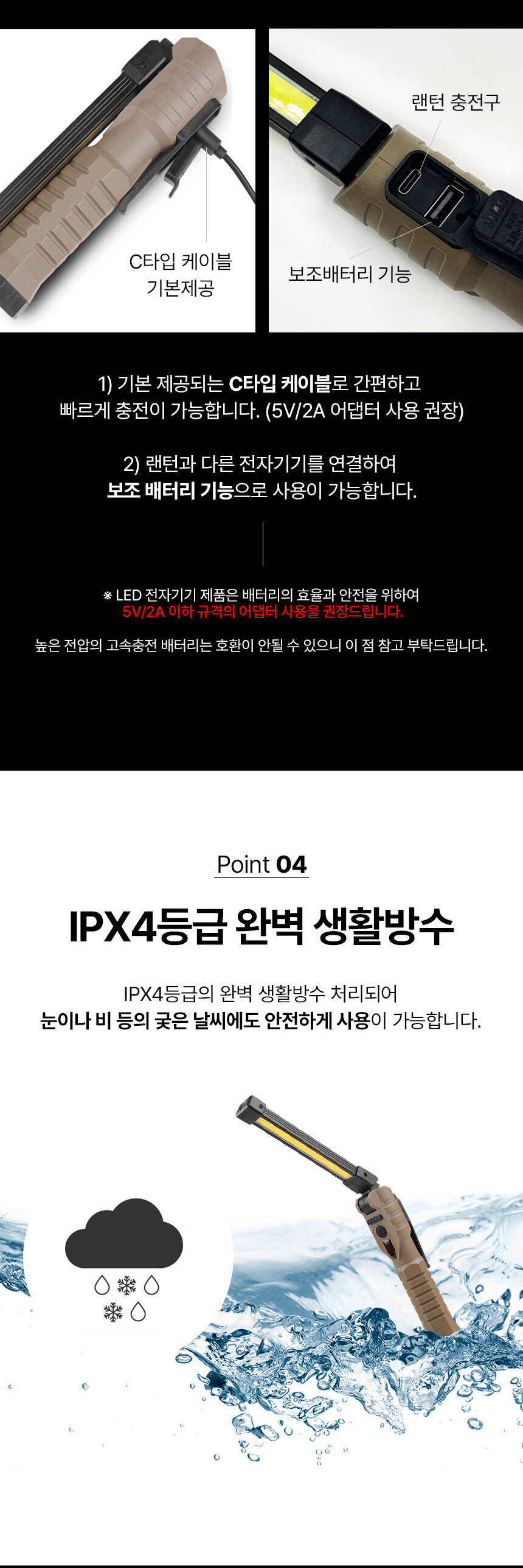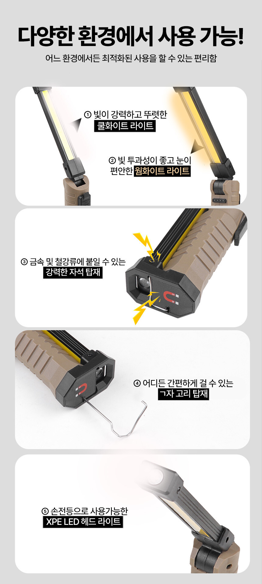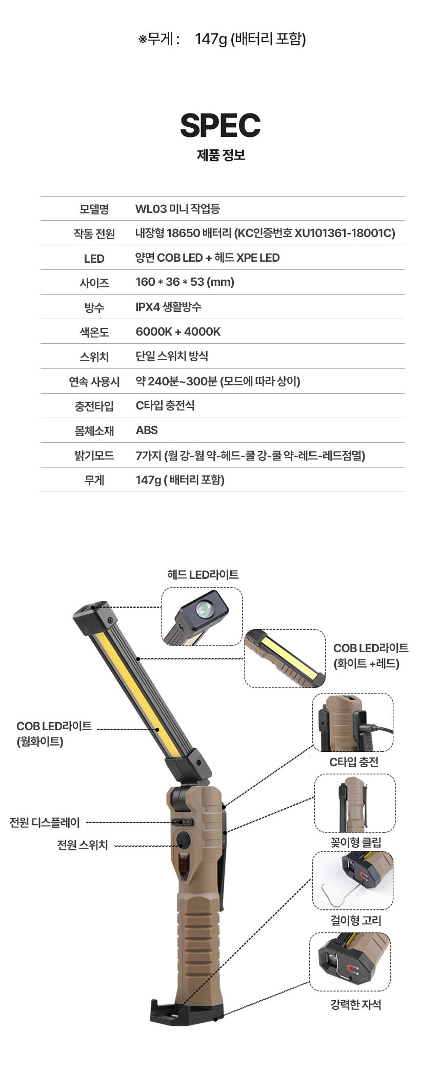 WL-03 LED 작업등 접이식 충전식 자석 C타입 작업 차량 정비등 다용도 랜턴