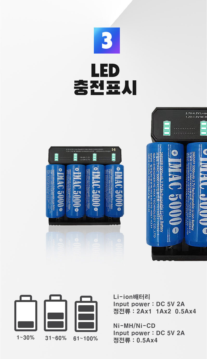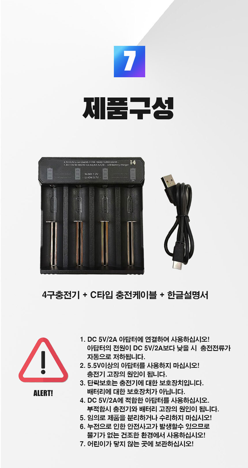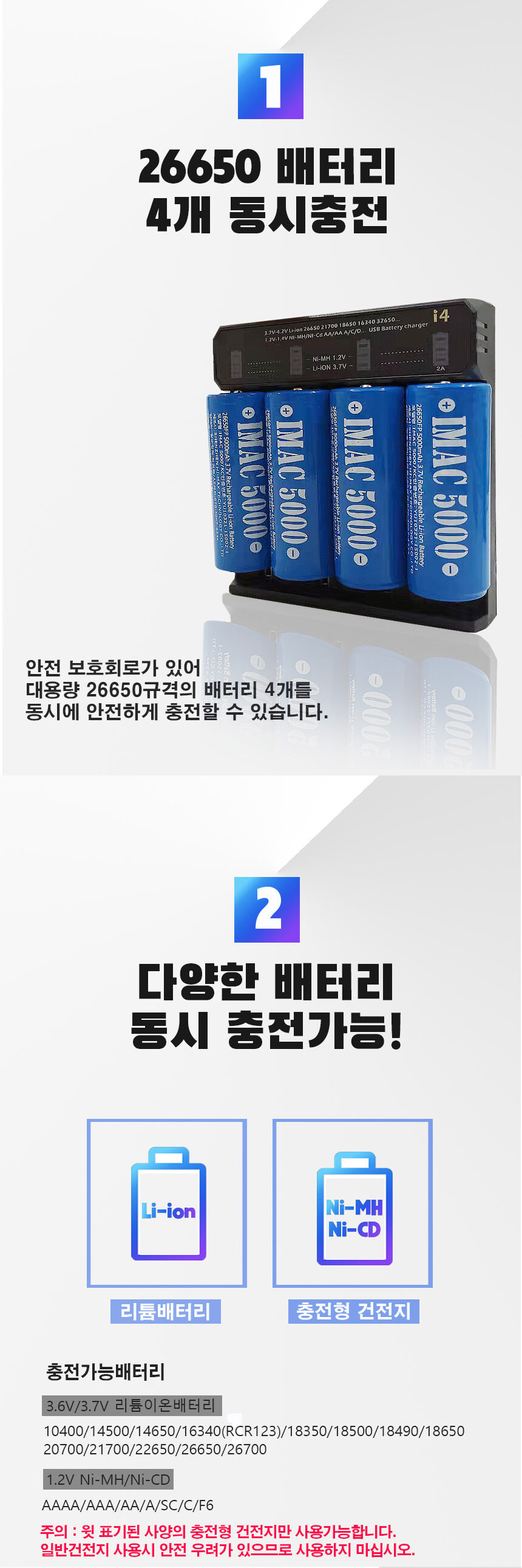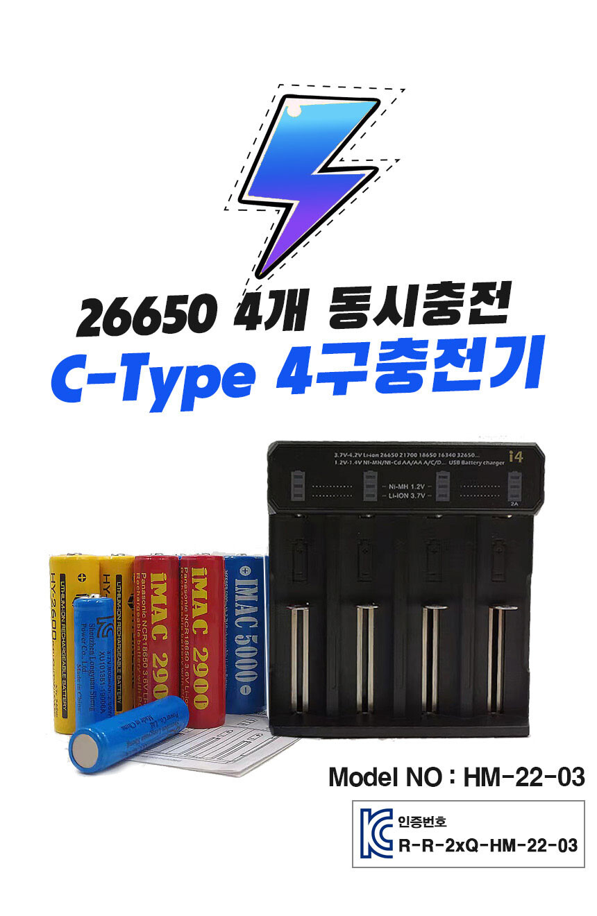 유라이트 4구 리튬이온 배터리 고속 충전기 18650 26650 14500 건전지 밧데리