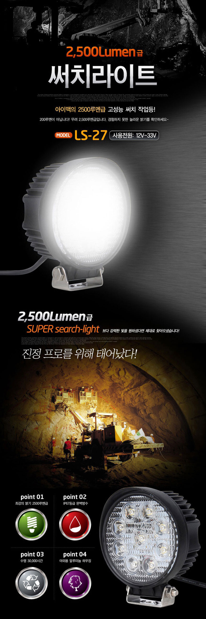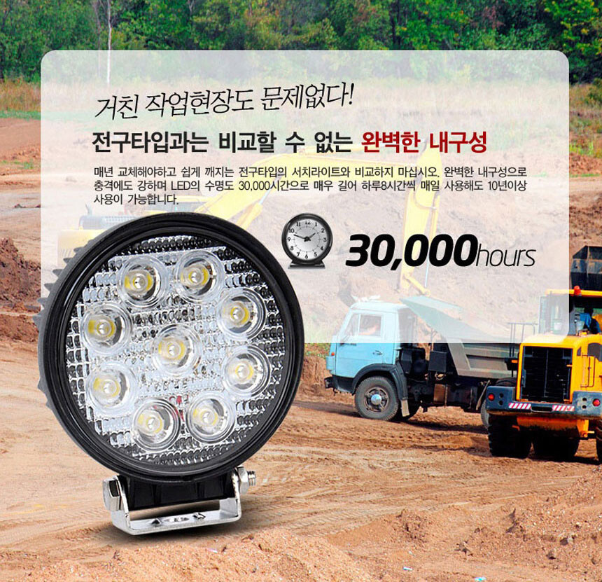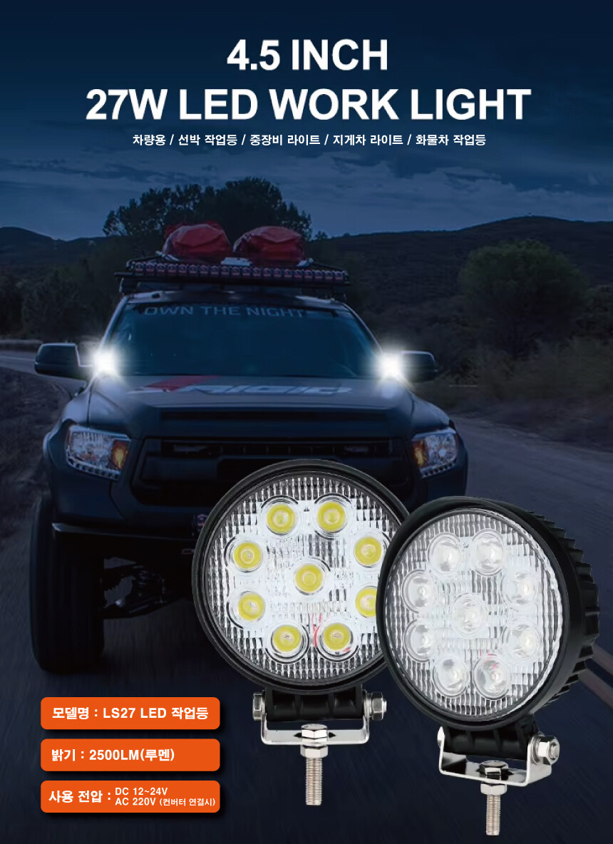 LS27 LED 작업등 27W 차량 선박 전조등 중장비 농기계 DC 12V 24V