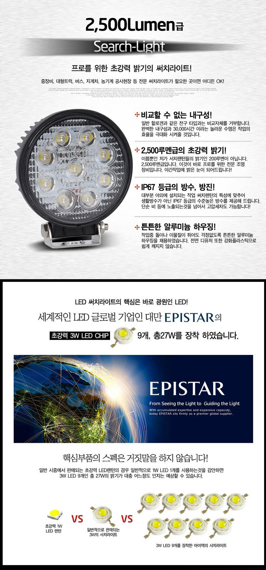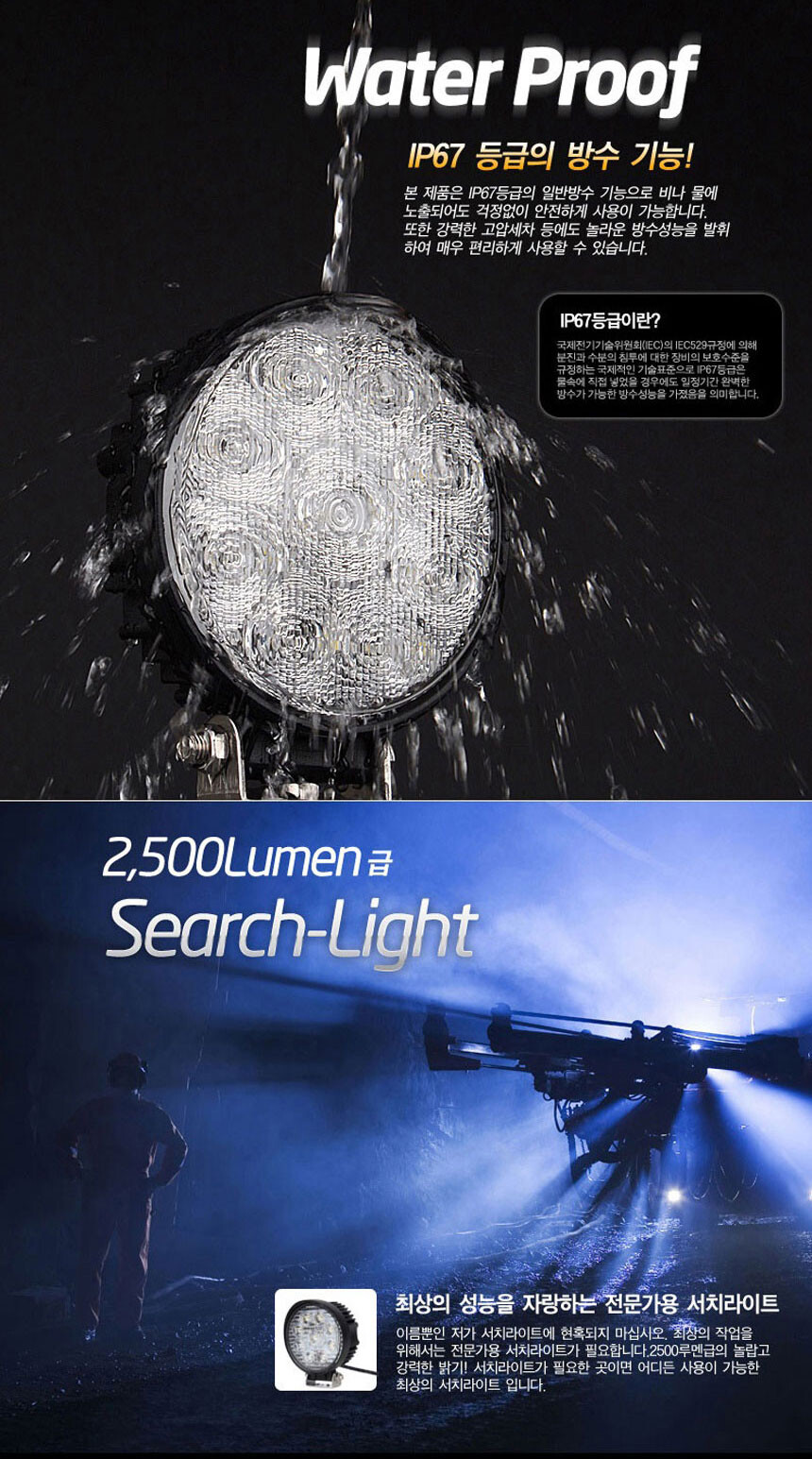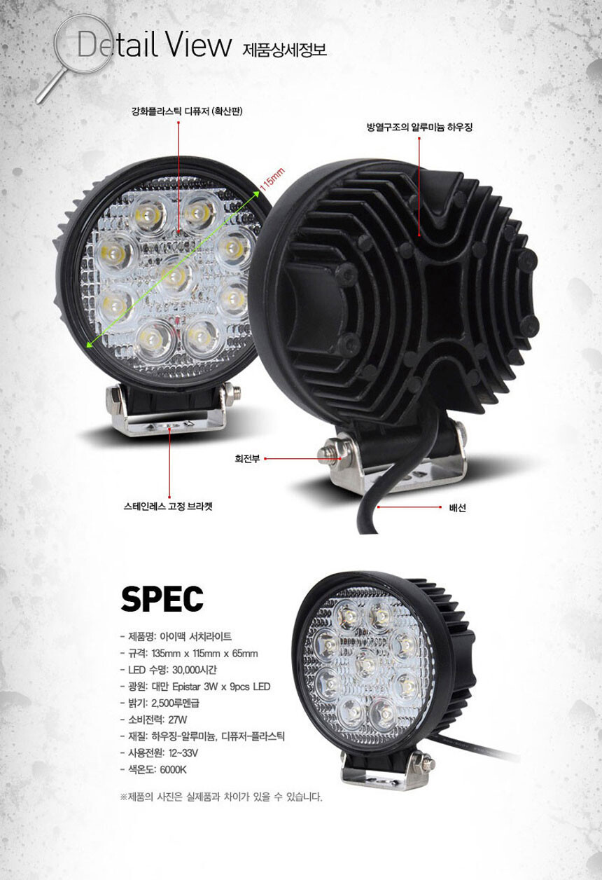LS27 LED 작업등 27W 차량 선박 전조등 중장비 농기계 DC 12V 24V
