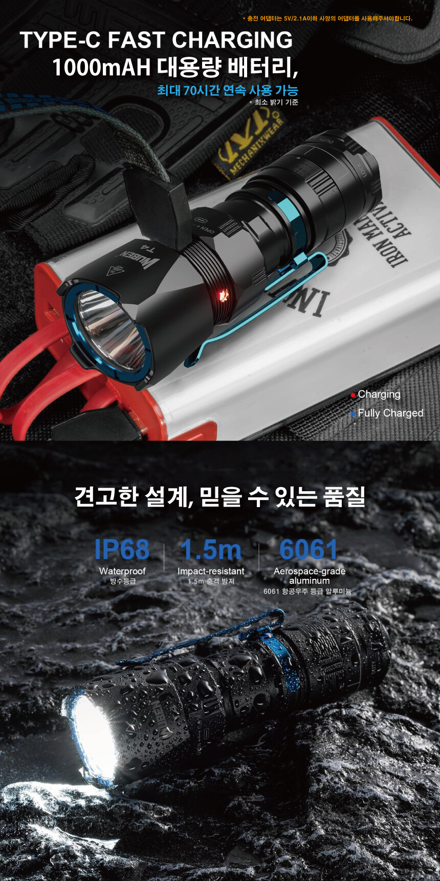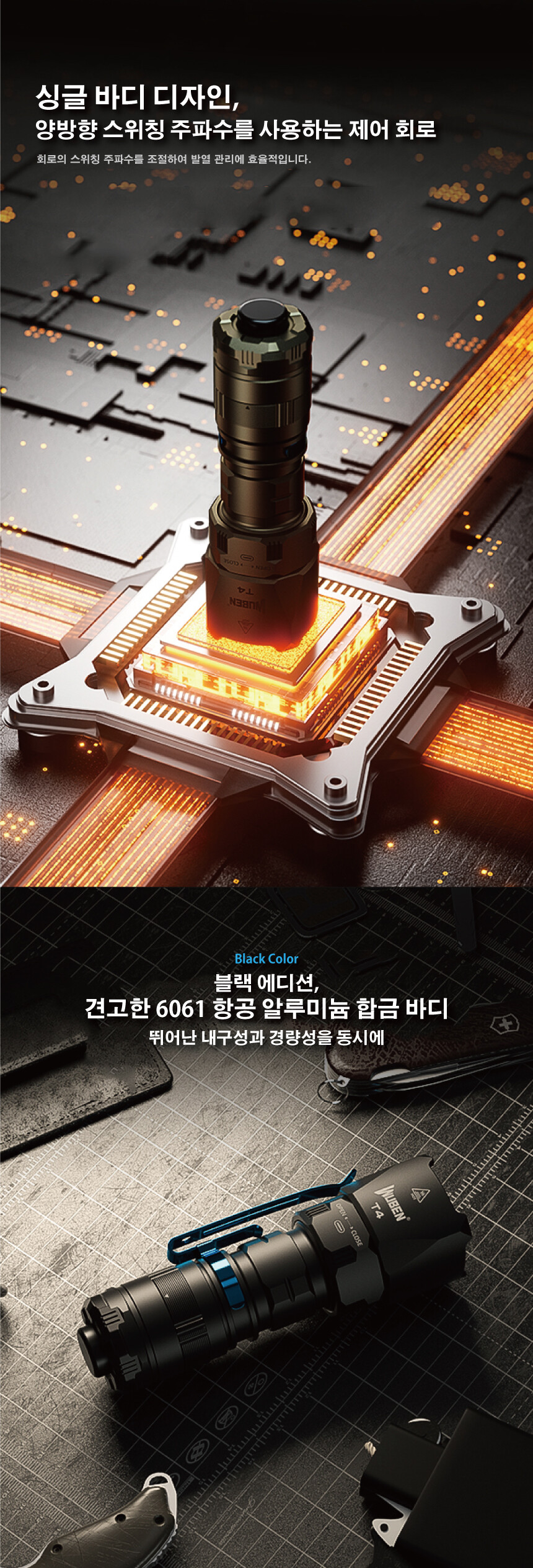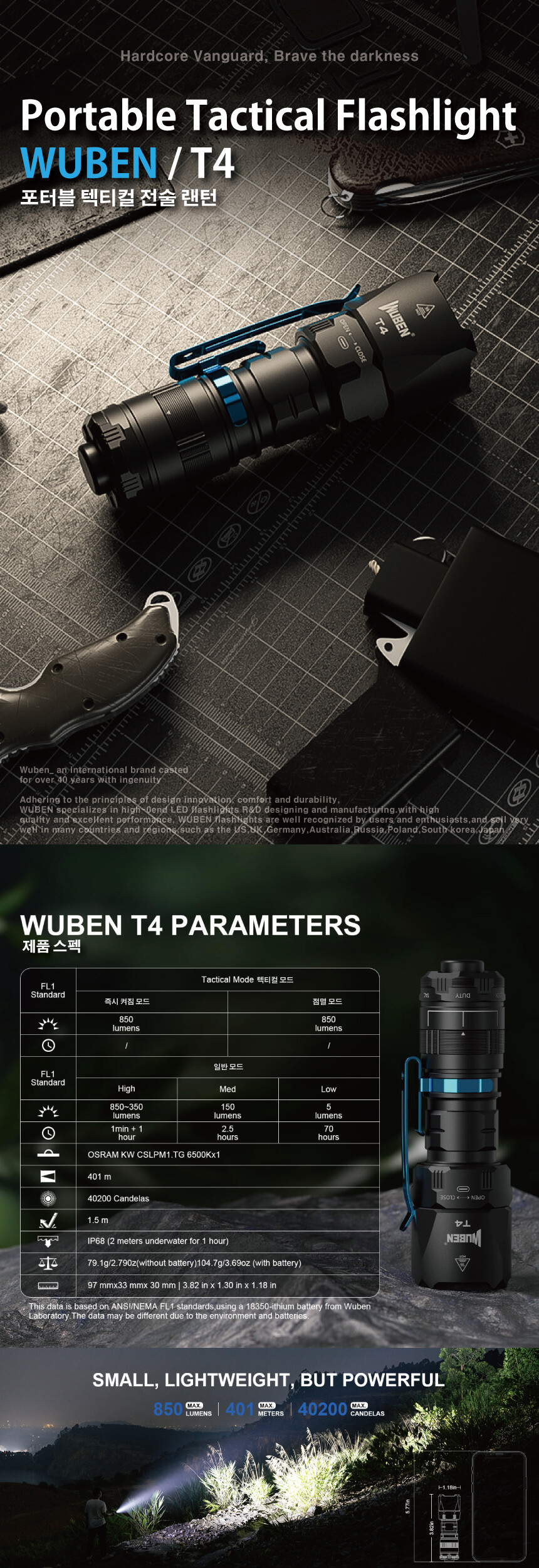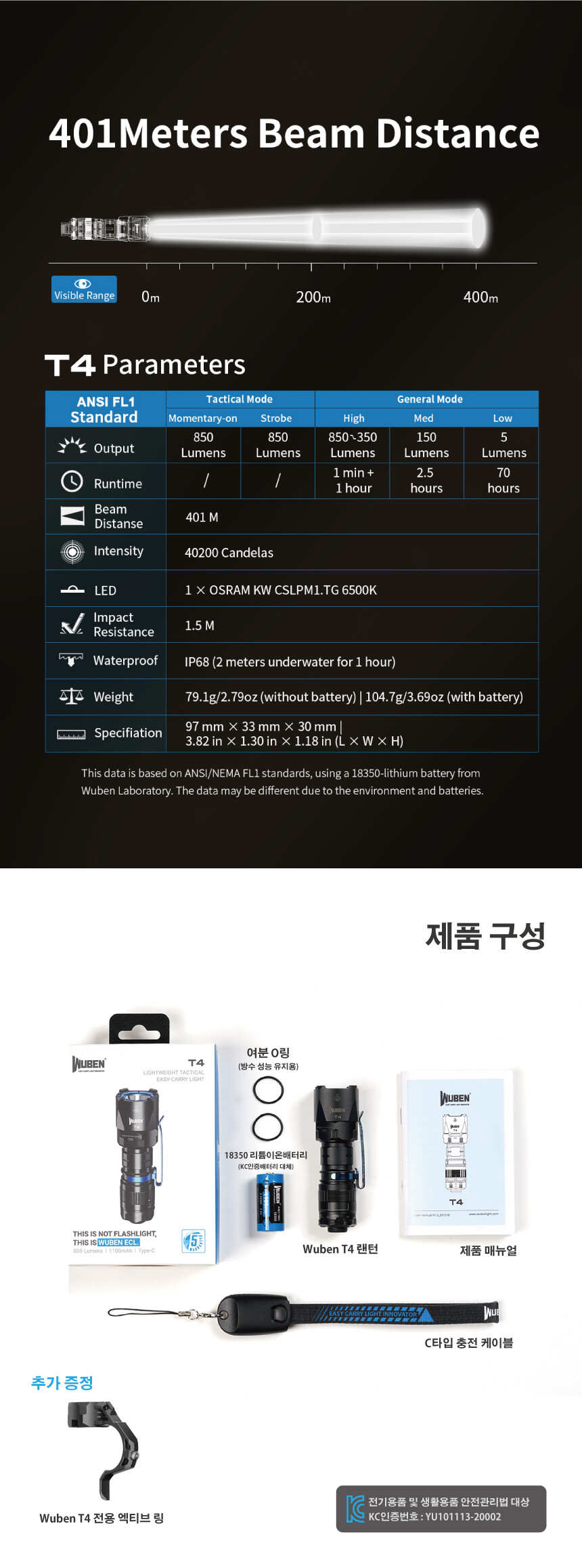 우벤 T4 소형 랜턴 LED 충전식 전술 텍티컬 군용 군인 경찰 라이트 손전등 후레쉬